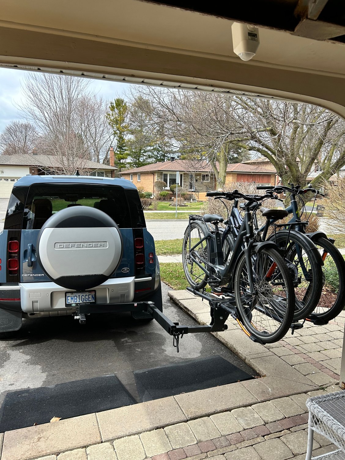 I have a 2024 Defender 110 (US-spec) and I’m looking for recommendations for an eBike rack setup that can safely carry 3 e-bikes and still allow access to the rear door / tailgate.