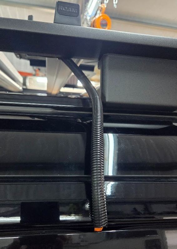 Good day. I'm hoping to get a better solution on how to cleanly route the cable from a 100W solar panel to the rear cargo or back seat area of a 110. The purpose of having the solar panel is to keep a Jackery topped off on extended trips. I really do not want to do any serious drilling or cutting since this is only for occasional use. I searched for and found some really great threads in this forum on serious cable routing involving removing panels and cutting, but that is above my pay grade. The cable is a 12 or 14 gauge and I don't see why it needs to be that heavy as it is only a 100 watt panel, but I can't find a smaller size. The black cable shielding in the photo is to somewhat cover the orange cable. Thanks!
