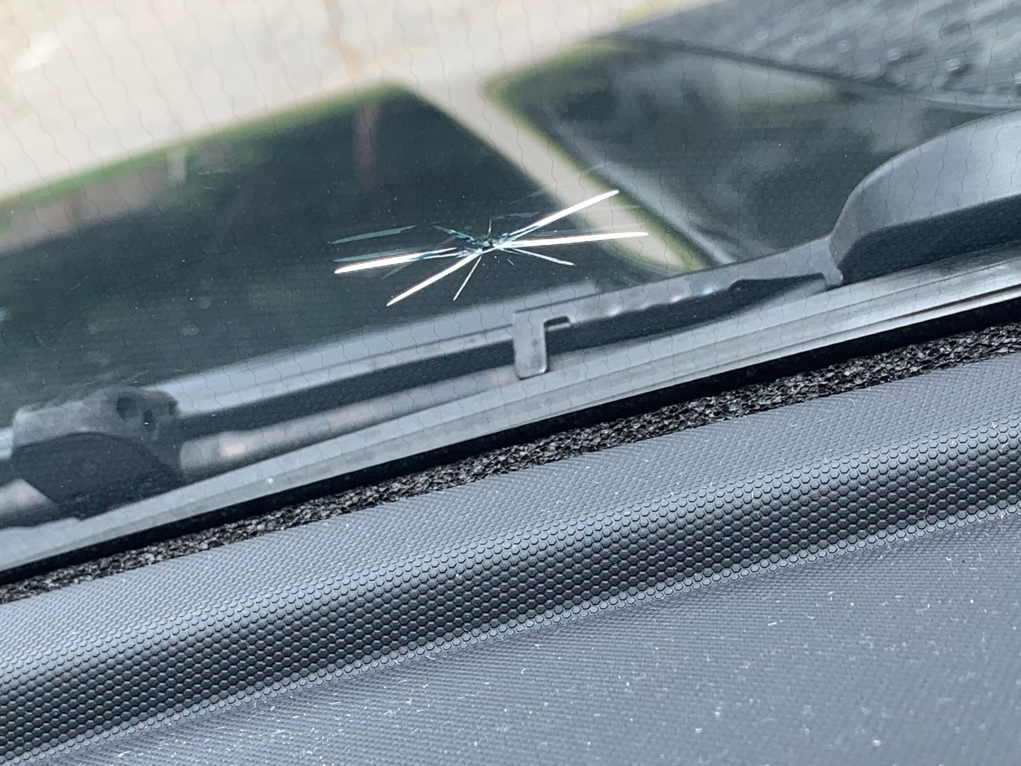 Driving behind a car going 20 today and it shot a small rock at my windshield. It was moving so slow I saw it coming.. was surprised it did this much damage.