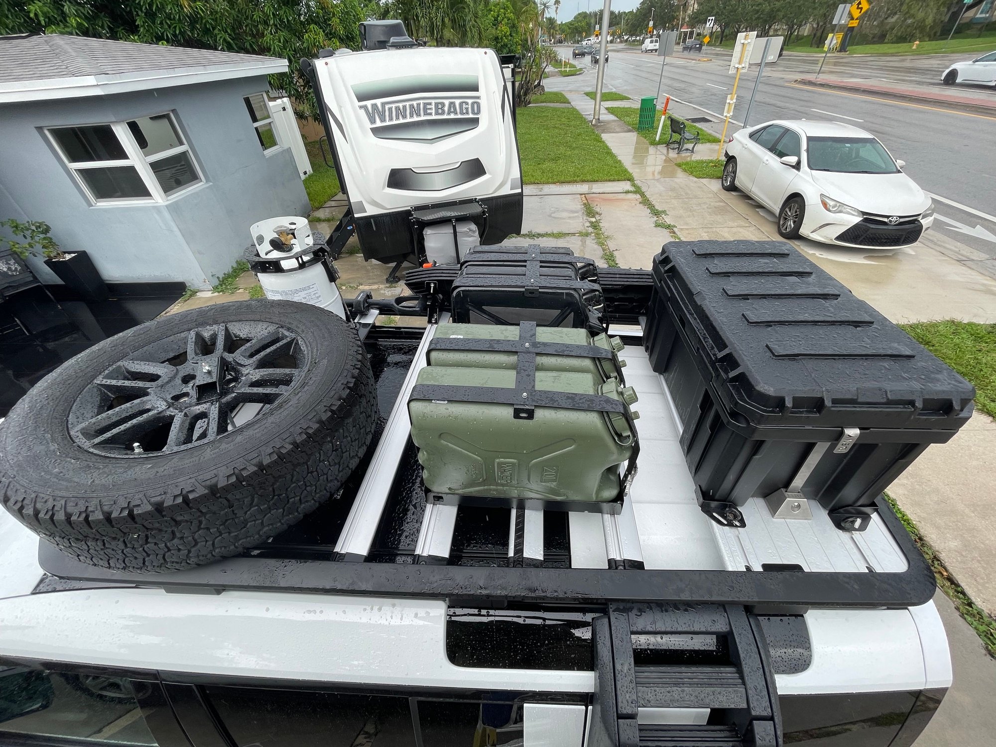 I was looking for options to carry extra fuel, Rotopax water containers, and Recovery boards. I am also planning to have a roof tent so I cannot have them on the roof.
