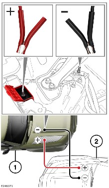 The P300 and P525 use the same method as the P400/D200/D250/D300/D350 MHEVs - use the terminals under the hood. All JLR products are like this, as none have the battery in the engine bay.