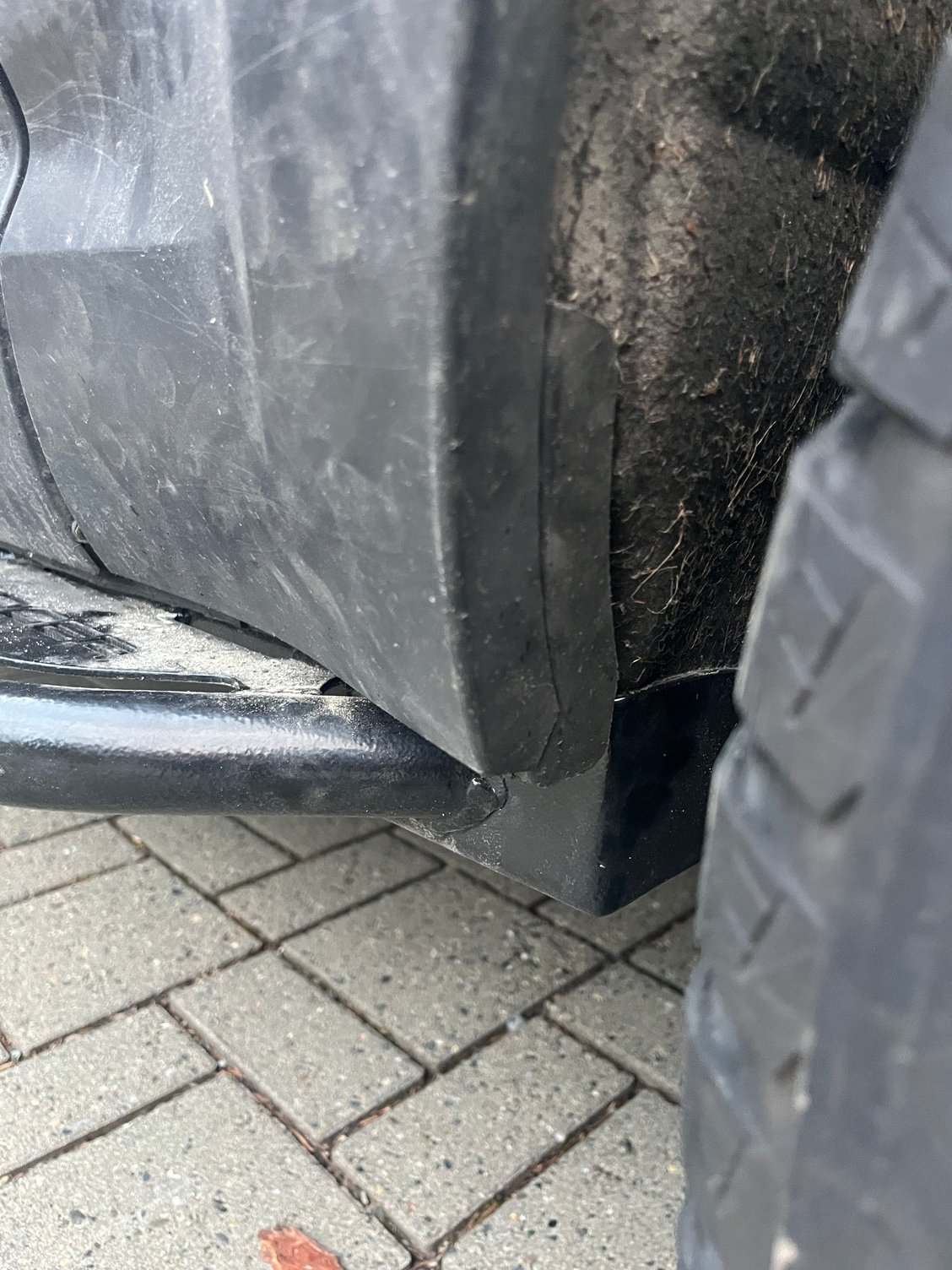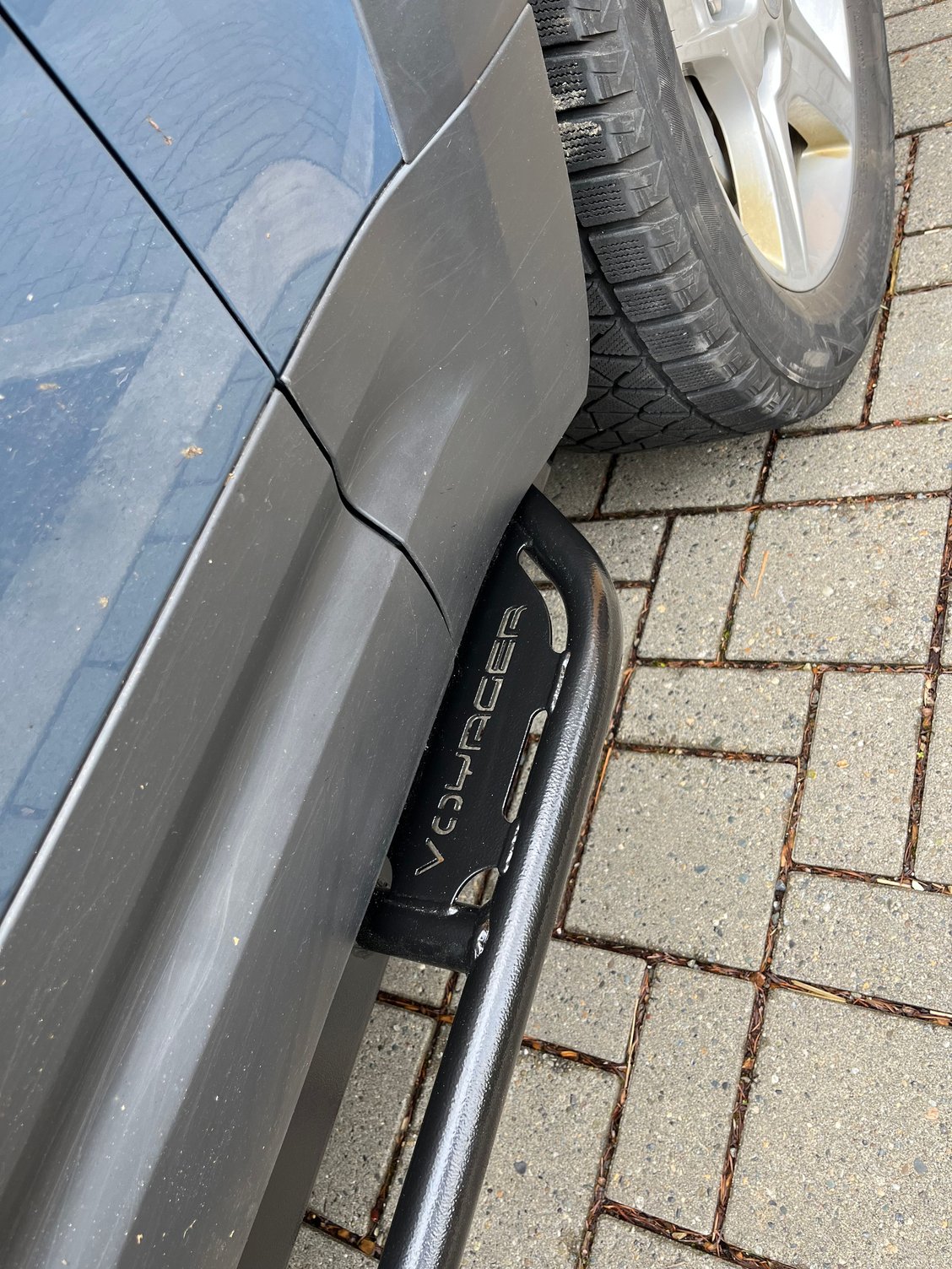 I also think it is more functional. Less gaps for crud to get trapped. OEM trim and Voyager hardware. Front wheel. OEM trim and Voyagers infinity pieces. I think OEM clips would work even better here. A little drilling to help align holes and Voyager plastic pins. Cut trim with box cutter. Gives neatest cut. Zip tie Front Rear trim