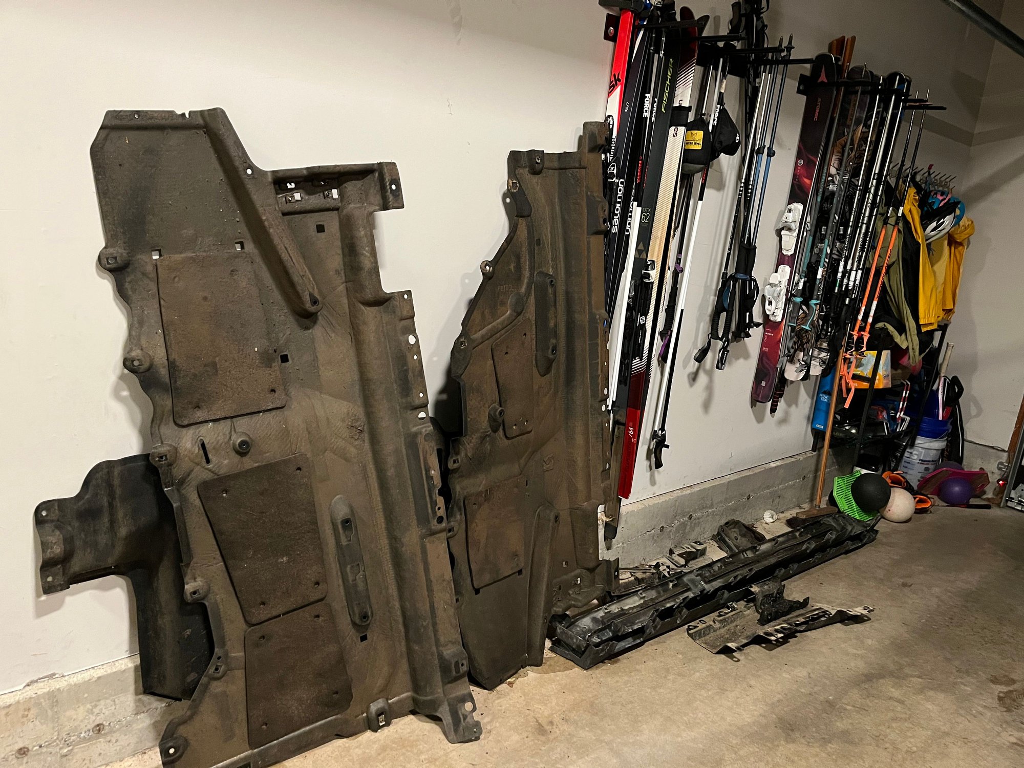 Front view Rear view Driver side looking forward Passenger side Rear metal brackets. Removed during slider install. Cut and repositioned. They support the felt at the rear. Drivers side Rear metal bracket of cuts. This allows the bracket to be reused. Passenger side view. Mud flapettes on the cut metal brackets. Cut metal bracket. Reuse to support felt.