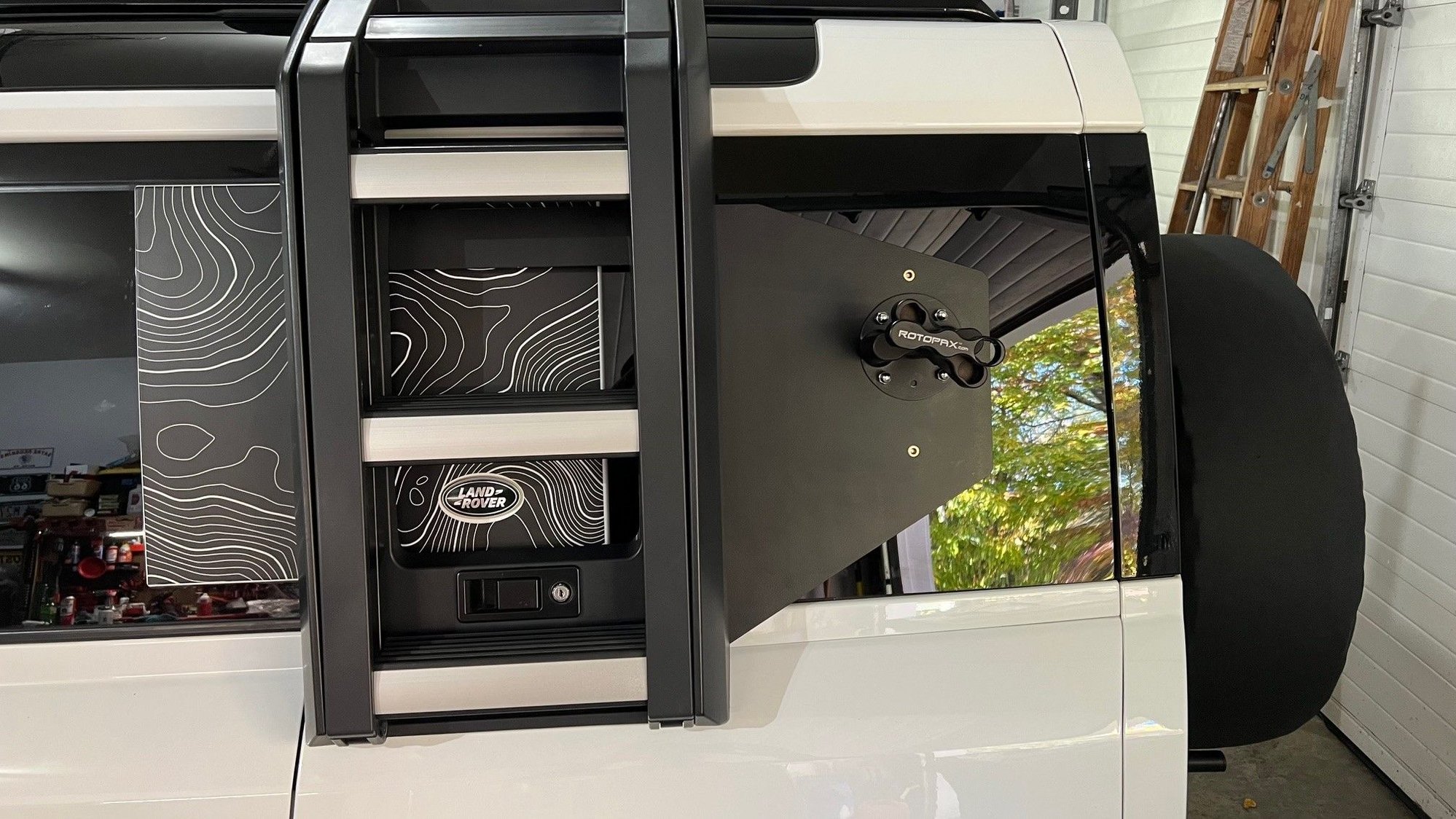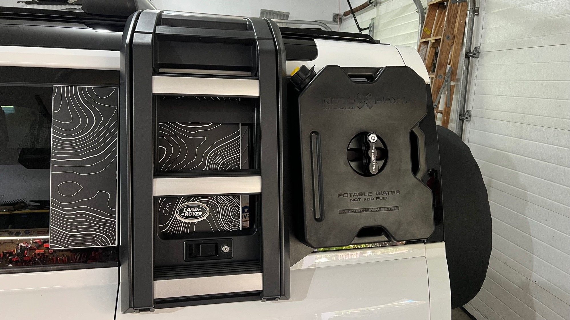 It was very straight forward install, mount is very sturdy and easy to use. The 2-gallon canister sits just below flush with the ladder...this is great because with the trails I do here in the Northeast USA, I didn't want to add width to my Defender. I can add an additional canister with the Rotopax extension mount when needed. I have read that the Rotopax Locking mount is prone to failing due to the lock being susceptible to dust/corrosion...I found a site that sells 3D printed covers for it to help with that issue...time will tell.