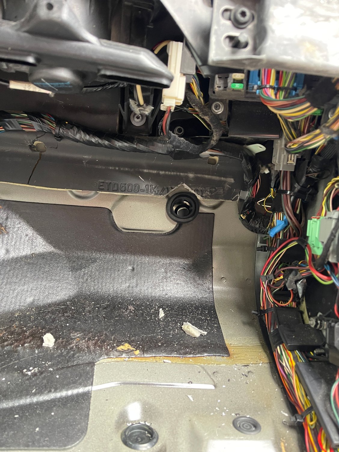 The firewall on the lr3 and most modern vehicles is basically 2 firewalls. So we drilled a pilot hole from the inside and then used a step bit to make the hole the size we need. Then used a universal wire boot from the inside and a rubber grommet from the outside. This seals up nicely but we will still put some silicon around the the wire when done.