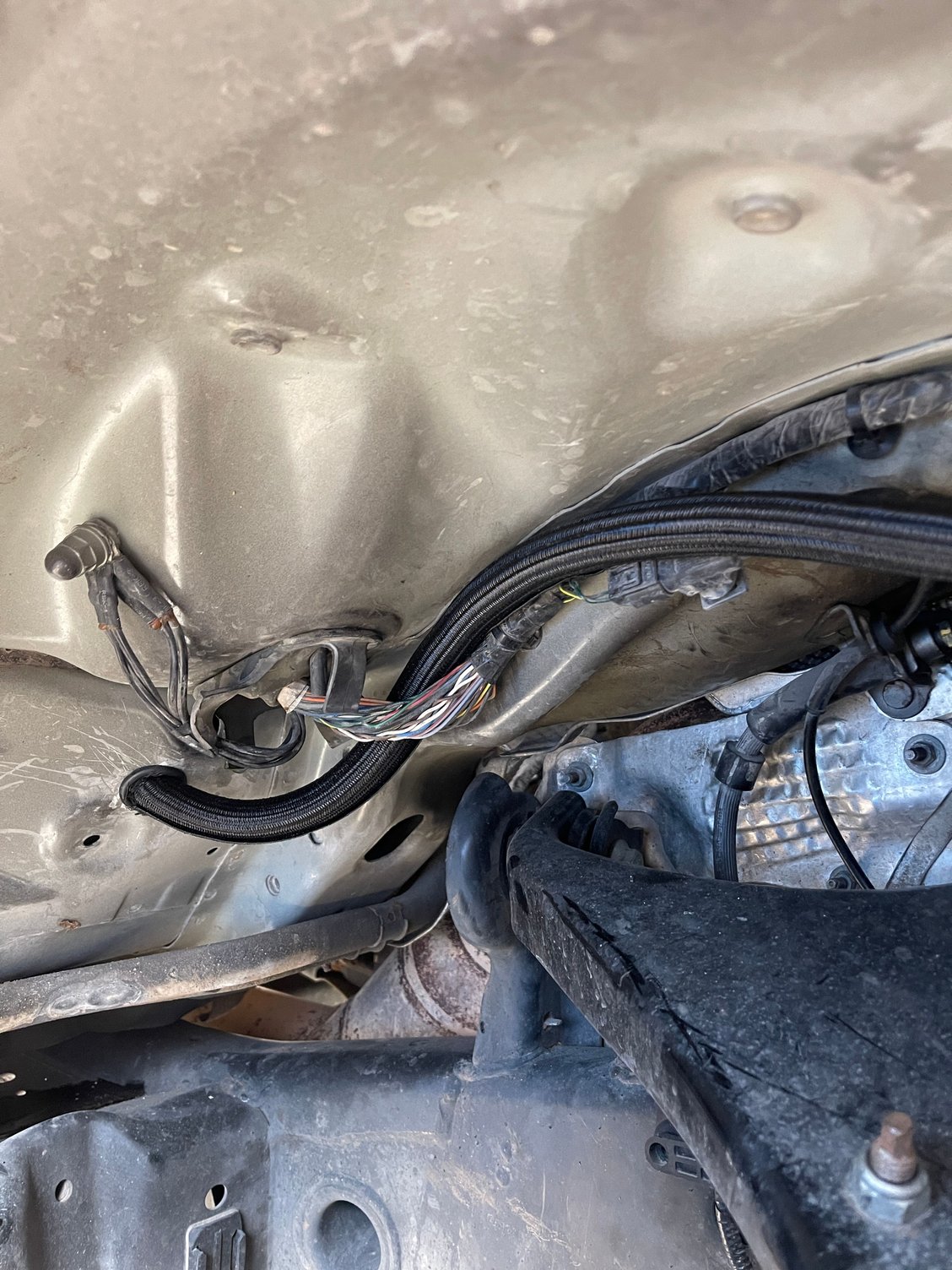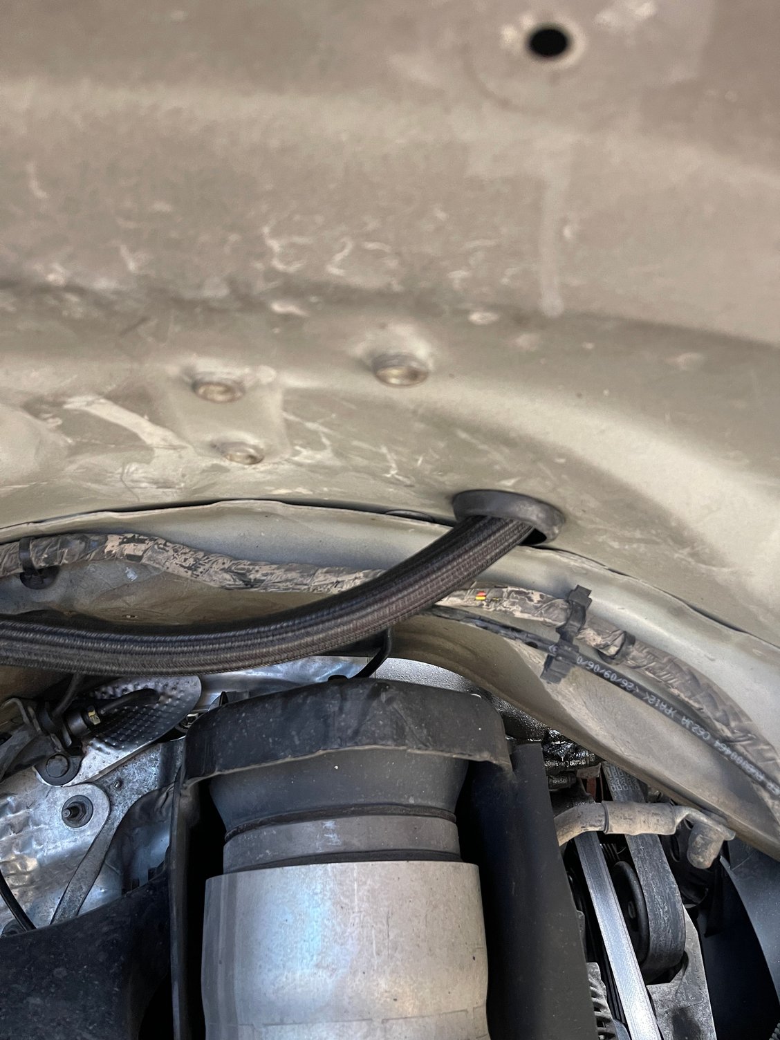 4th and 5th: these are related to how we are running to e power wires. I wanted to use existing holes where I could. I don’t want to use the main harness hole mainly because the power wire is too thick (1/0) and we don’t want to disturb the in cabin fuse box. So we made our own hole on the firewall through the wheel well (pics of that coming later today) and will be running the wire up by the air box through that hole in the pics