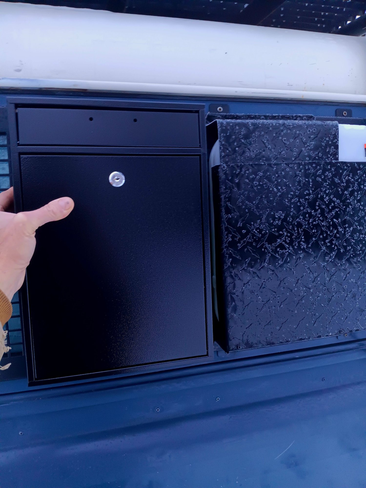 Been searching and searching for a metal box to go below it that could be mounted, then gun vault mounted to it. I'd ordered a FrontRunner box that kept being on back order for months and they had no idea if they'd ever see it..so cancelled. But, kept coming up empty...everything was either square or some funky shape. In casual conversation l mentioned it to my wife and told her dimensions...two minutes on Amazon..."is this what you're looking for?"