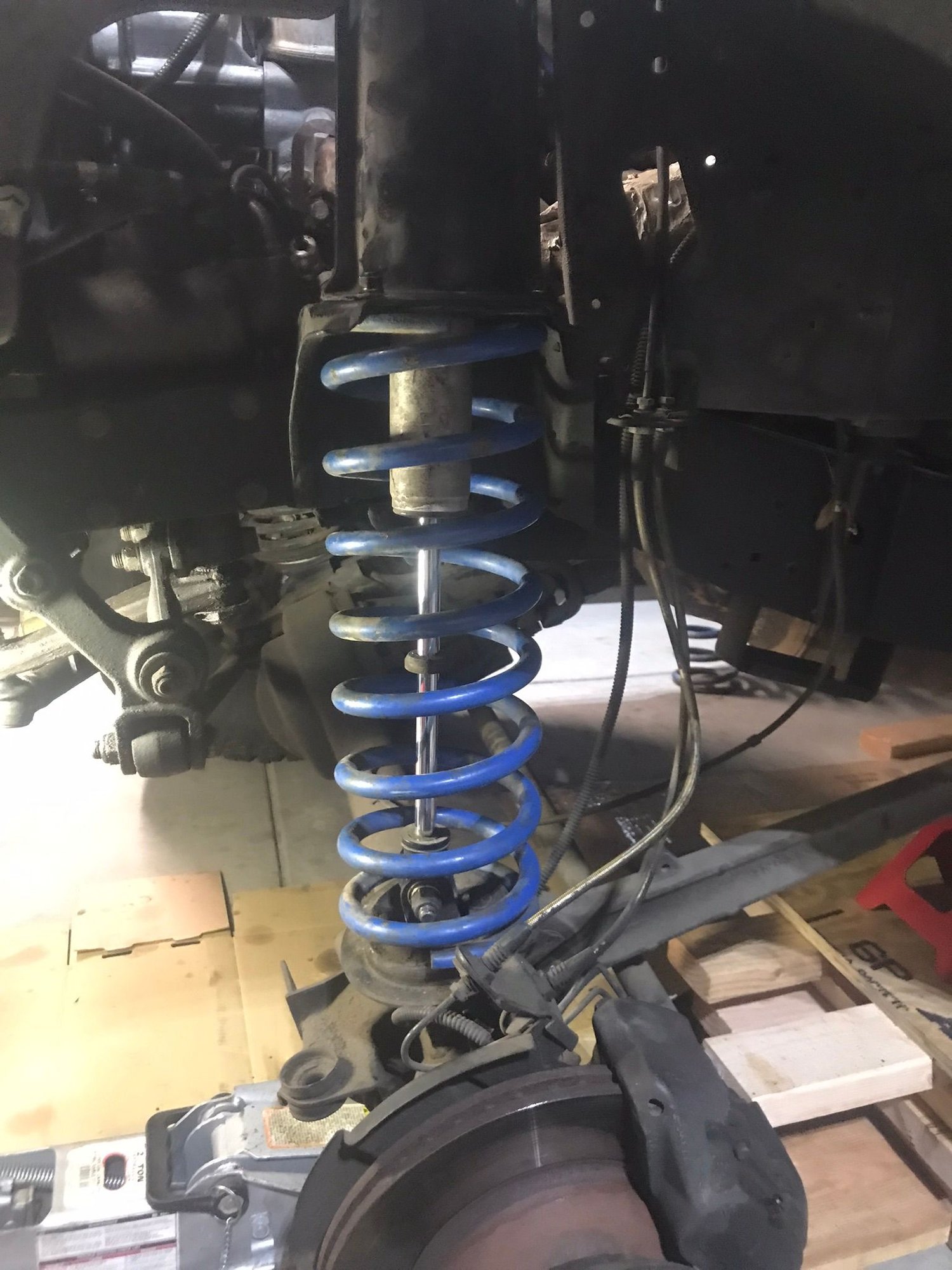 7100s and big blues in rear. Hard to see but a bump stop is inside spring…though if ever hit would blow a hole in the floor lol