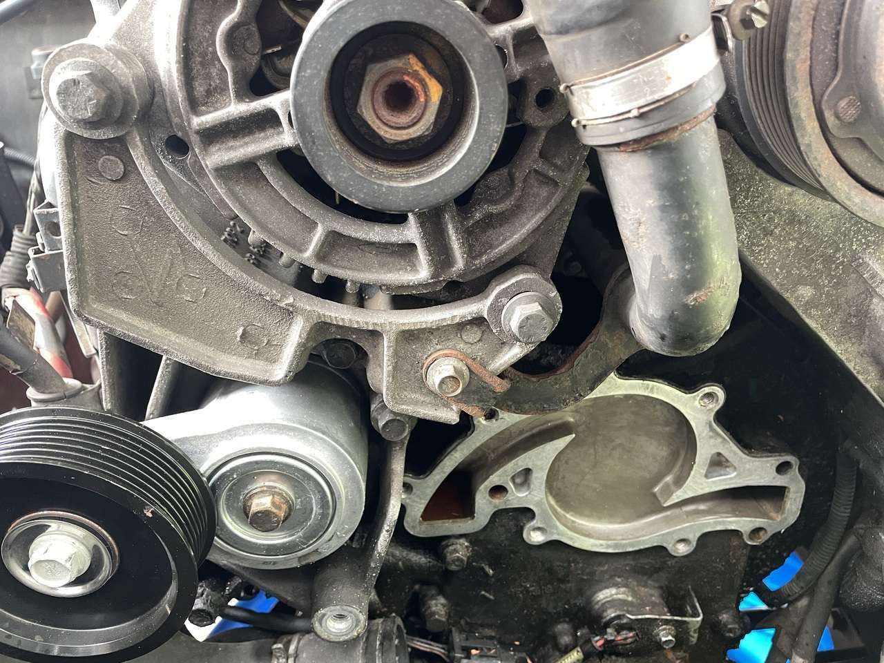 Made some real progress today on the cooling system upgrades. I installed the FlowKooler water pump, the Extinct Inline thermostat (without the thermostat), connected all the coolant hoses, replaced both idler pulleys, and re-installed the new serpentine belt. For once, everything went smoothly except for bonehead me installing the main hose across the radiator backwards the first time. :facepalm This weekend I'll flush out the rest of the Dexcool and replace it with normal coolant. Can't wait to have her back on the road.