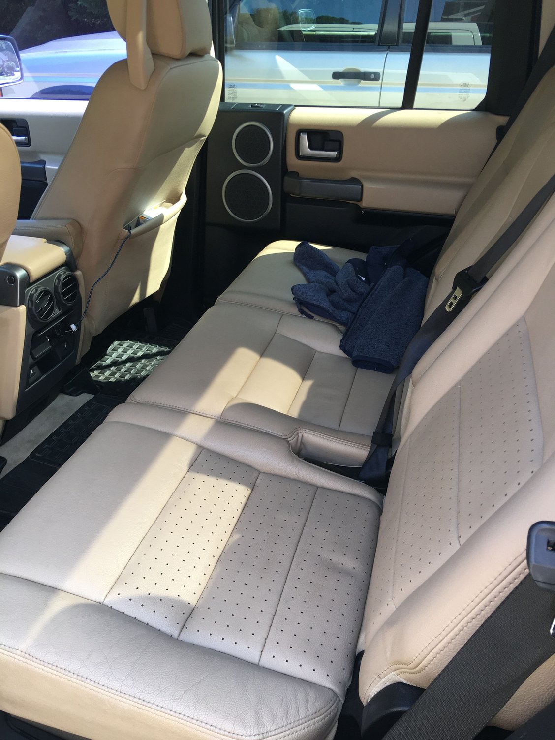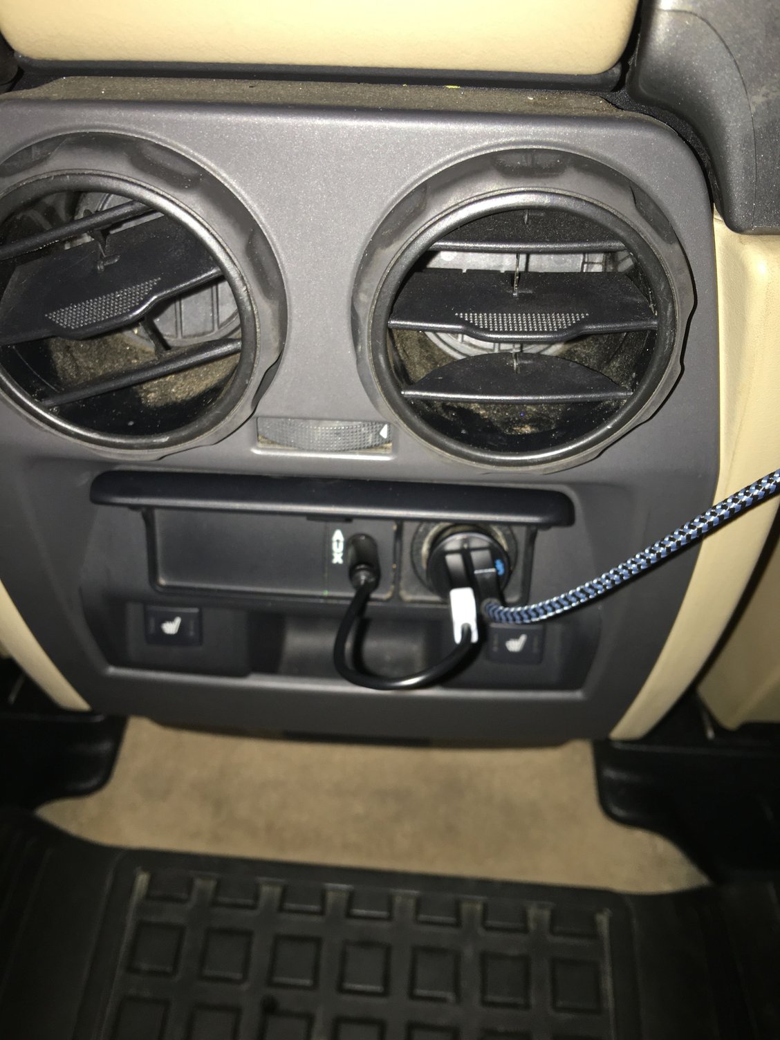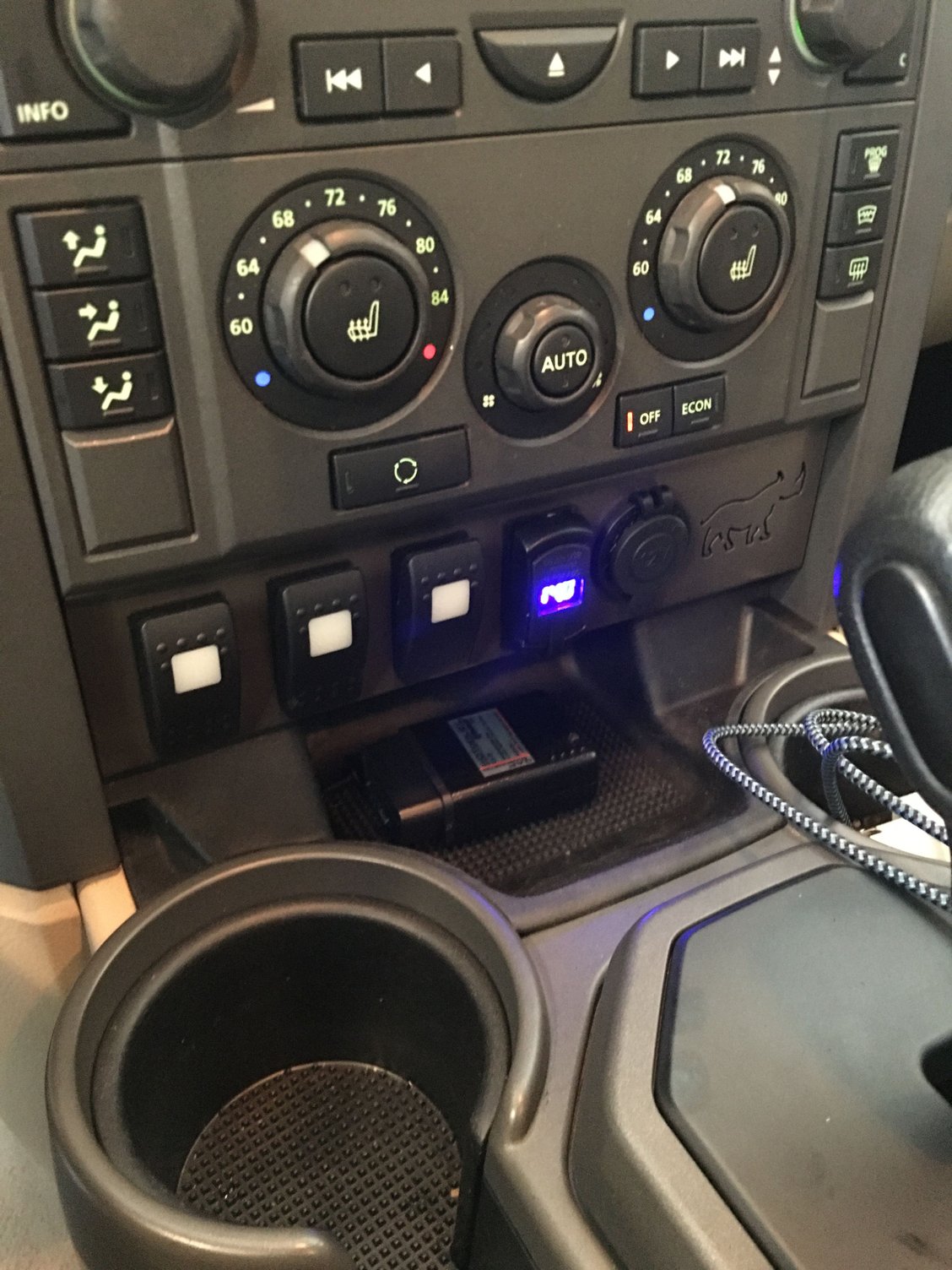 One thing that bugs me about Land Rover is no BlueTooth and the aux port in the rear of the center console. I gotta have my Spotify. Aux adapter with Bluetooth which is powered by the cigarette lighter. Works great, if you're looking for Bluetooth without tearing into the dash and adding an android unit, this is probably the best option out there. The other usb cable is for my son, he tucks it into the seat back pocket.