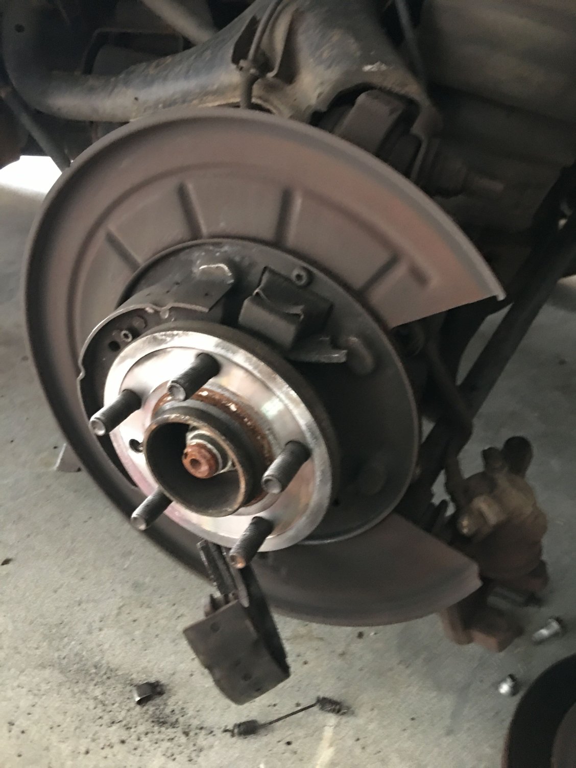 Parts arrived and I tore into the rear. Started with the driver's rear (where the dragging was coming from). Right when I pulled the rotor off this is what I found.