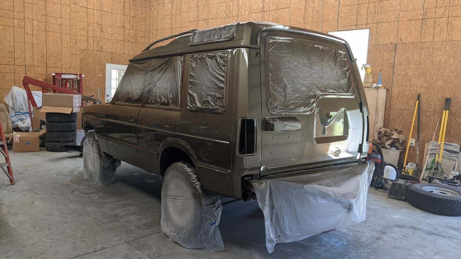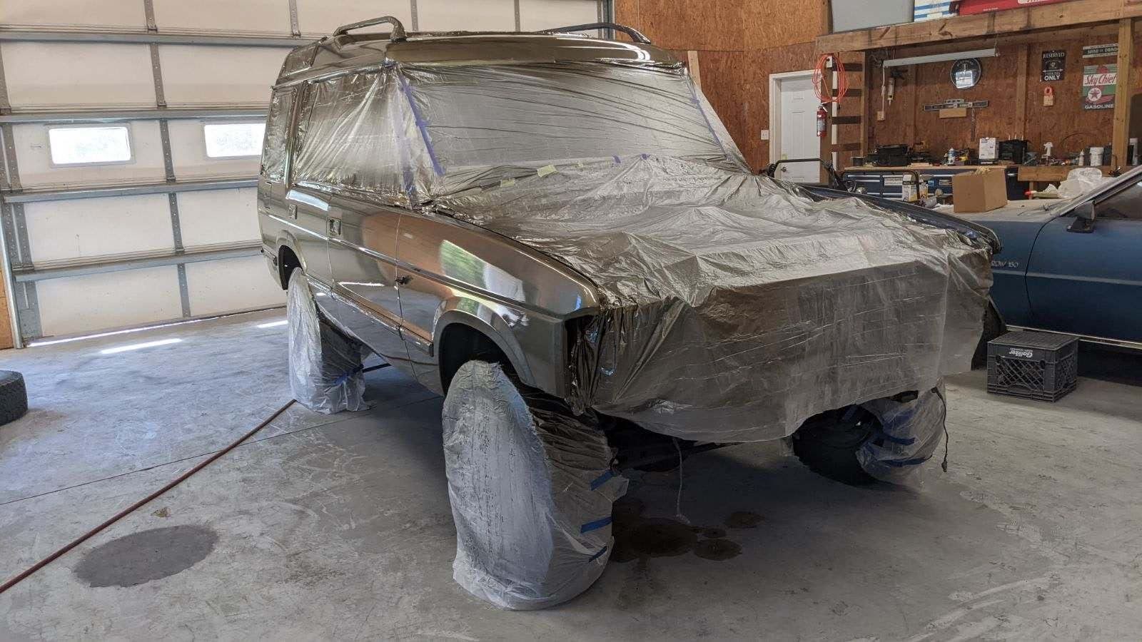 Prior to painting the body we also cleaned up and painted all the trim and repaired a few pieces of molding. I didn't really get before and after pictures but you can kinda see it with the tape and plastic pulled off.