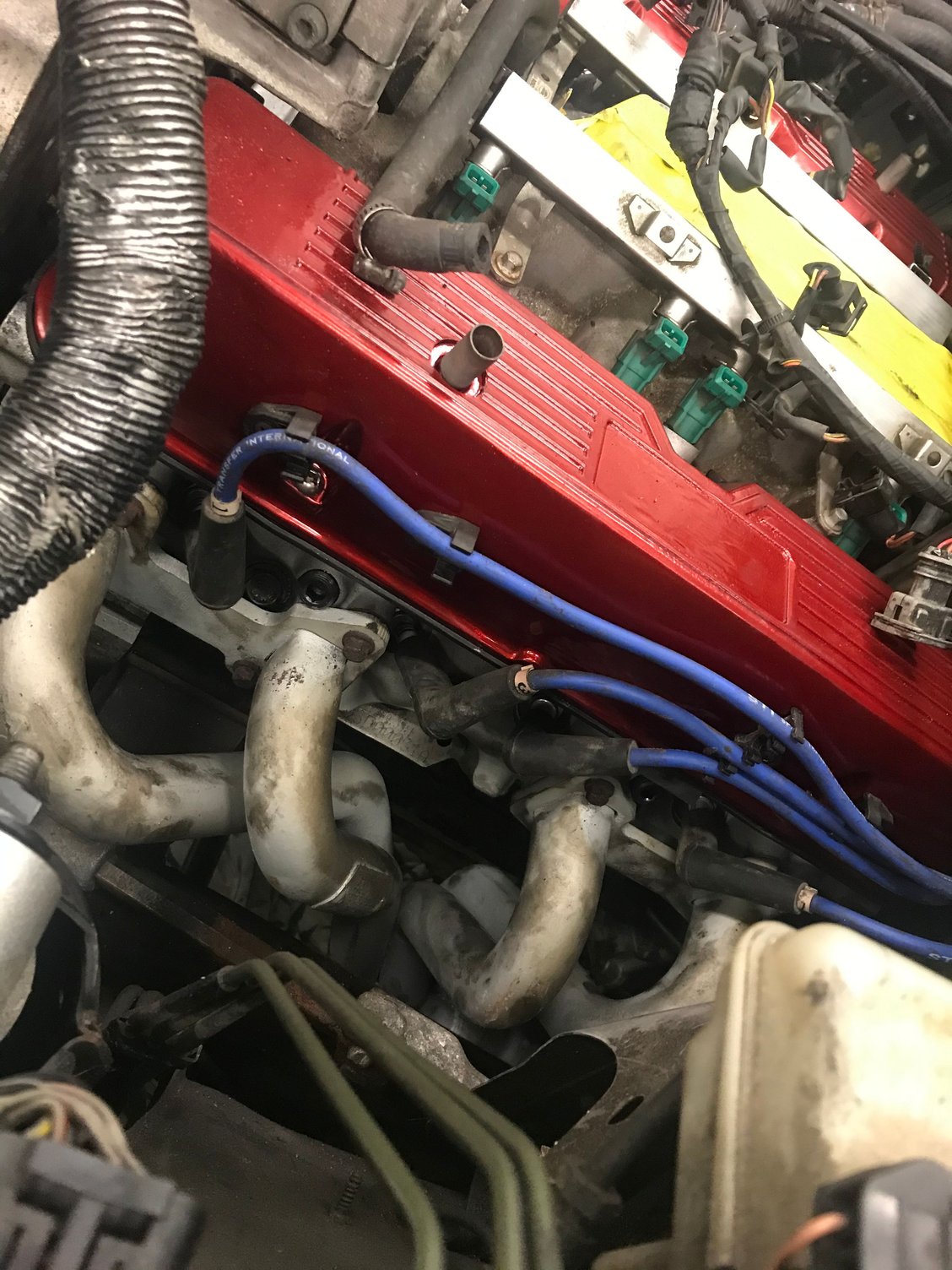 Headers back in. The starter heat shield was a pain to get clearance. Almost wanted to chuck it. I know it probably needs it. Got rid of the air injection today too. Much better access without it.