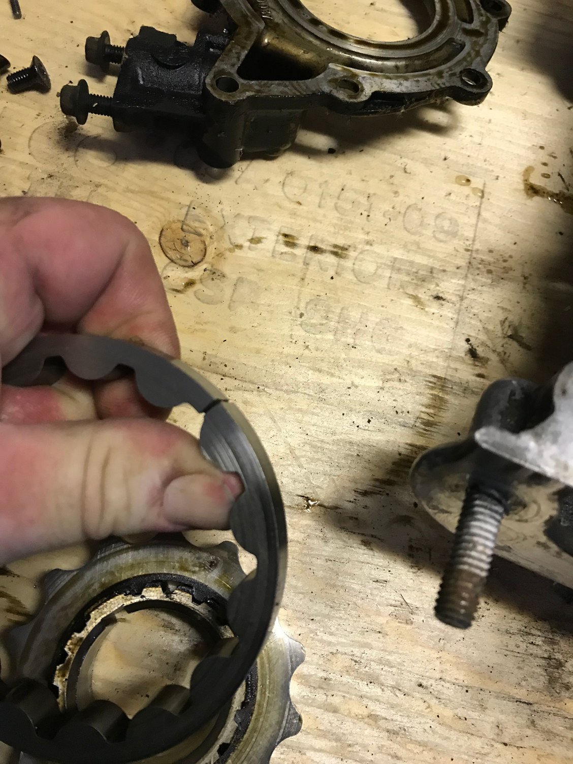 I pulled the front cover apart from my 4.6 motor to go thru it. Not happy with what I’ve found. Outer ring gear on oil pump is broke. Not sure how much oil pressure it would of still had like that. The bearings don’t look terribly bad.