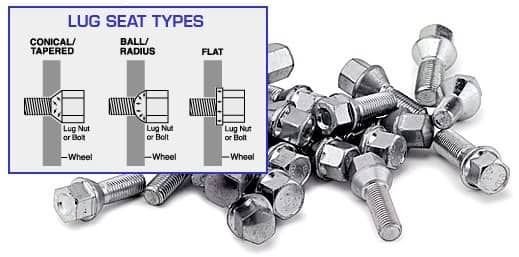 All the steel wheels I've ever messed with = always had a very visible ring around the lug hole which was for the "conical seat" type of lug nut. Like Fish said take a wheel, and sit a lug nut in it. You should be able to tell which type it takes very quickly. His attached image is a very good comparison of the 3 most common types.