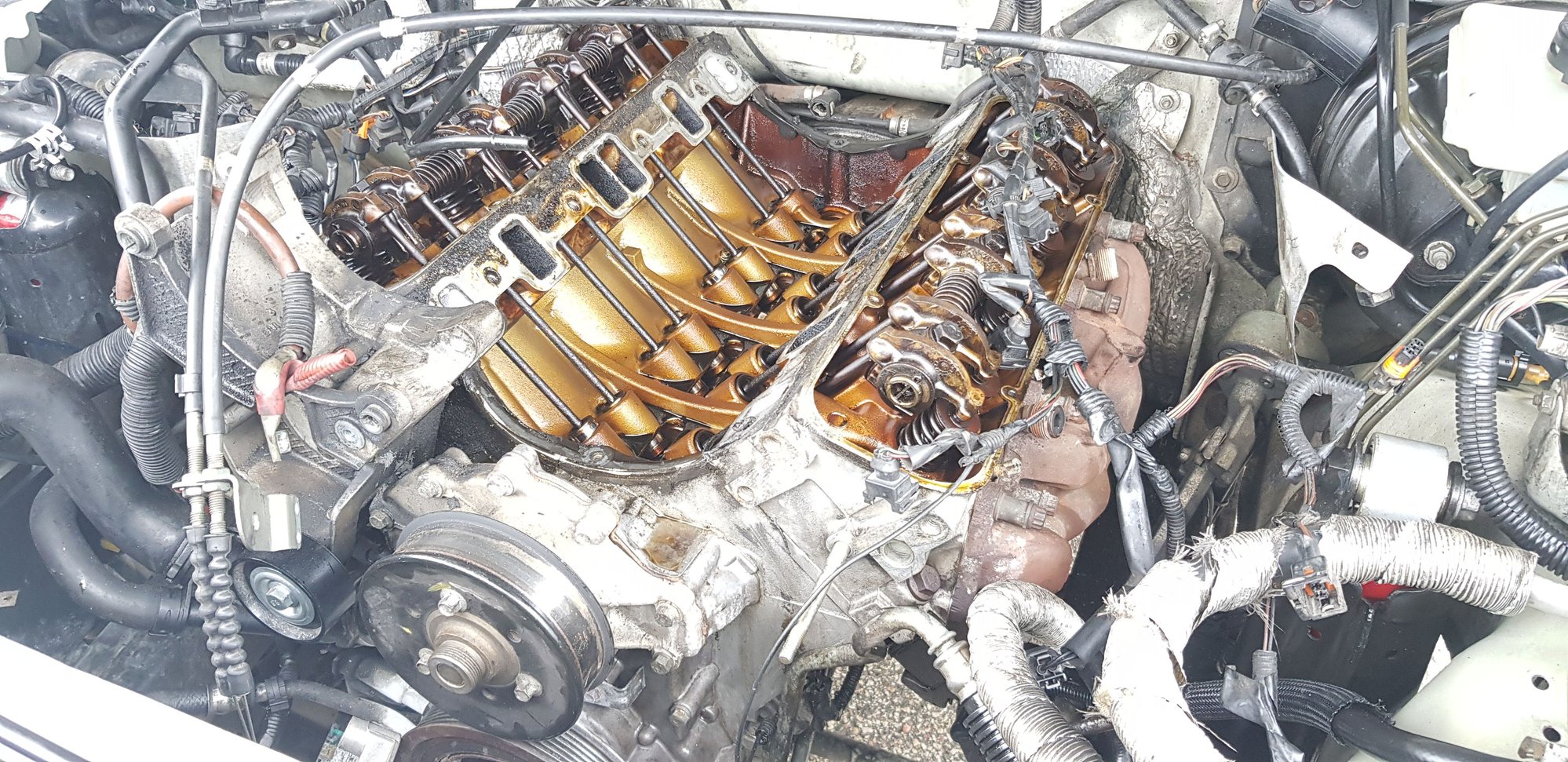 I've decided to replace only the head gaskets, valve cover gaskets, valley pan gasket, upper manifold gasket plus some o-rings. Will also be replacing the oil packs with genuine coil pack assembly, magnecore blue wires and champion spark plugs. The rods, lifters, oil pump and camshaft will stay as they are for now.