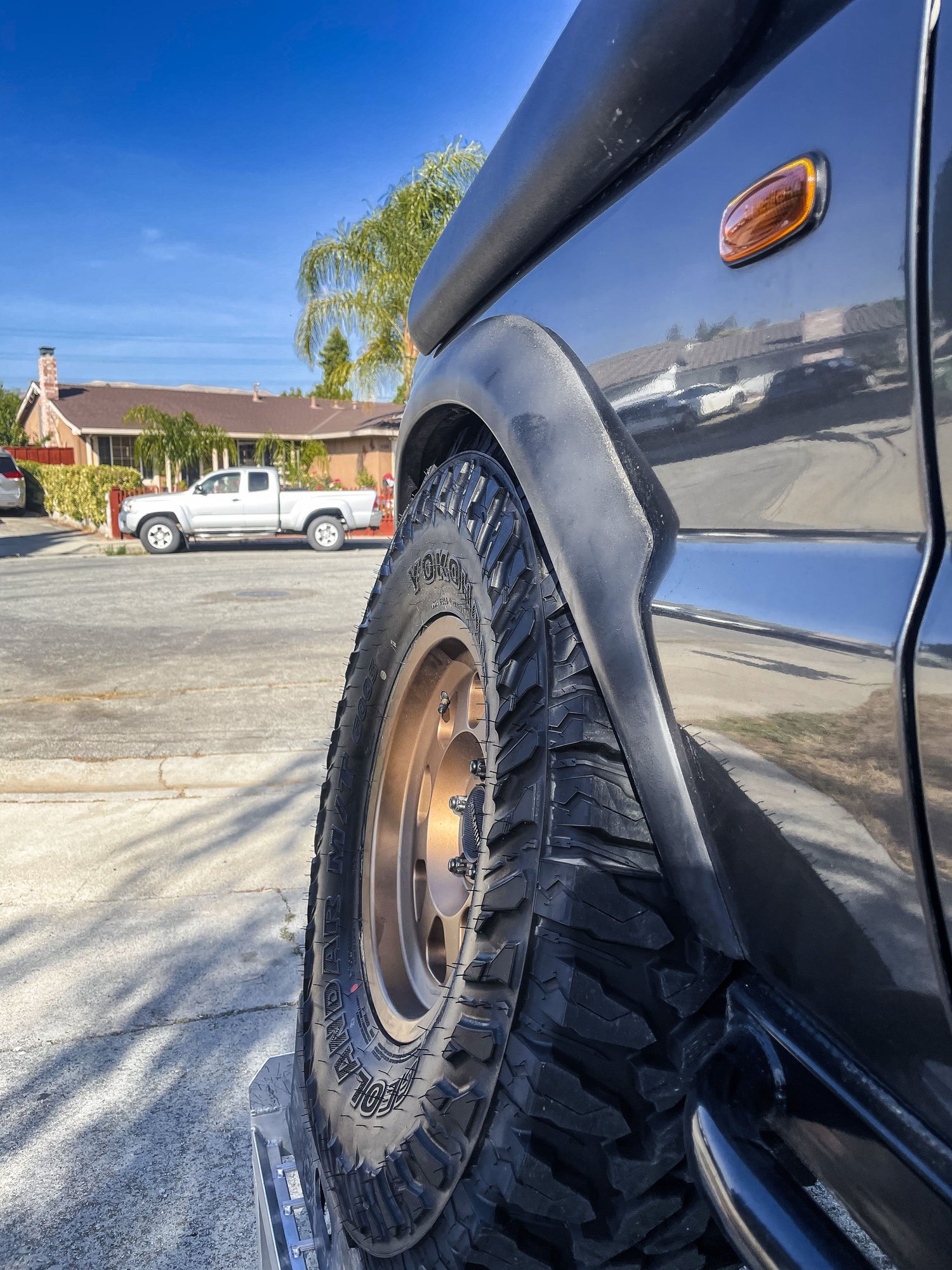 I would check rear with both sides at full bump. Pending wheel offset there is a good chance they will rub at the top of the arch. Or hit a speed bump, road construction, or a whoop too fast and you'll here it lol. The fender can be bent/rolled so that it's not a sharp edge that likes to take out chunks of your nice new tires...my 285s on a worn out suspension got sliced and diced on the outer lugs when I first got them before I refreshed springs/shocks.