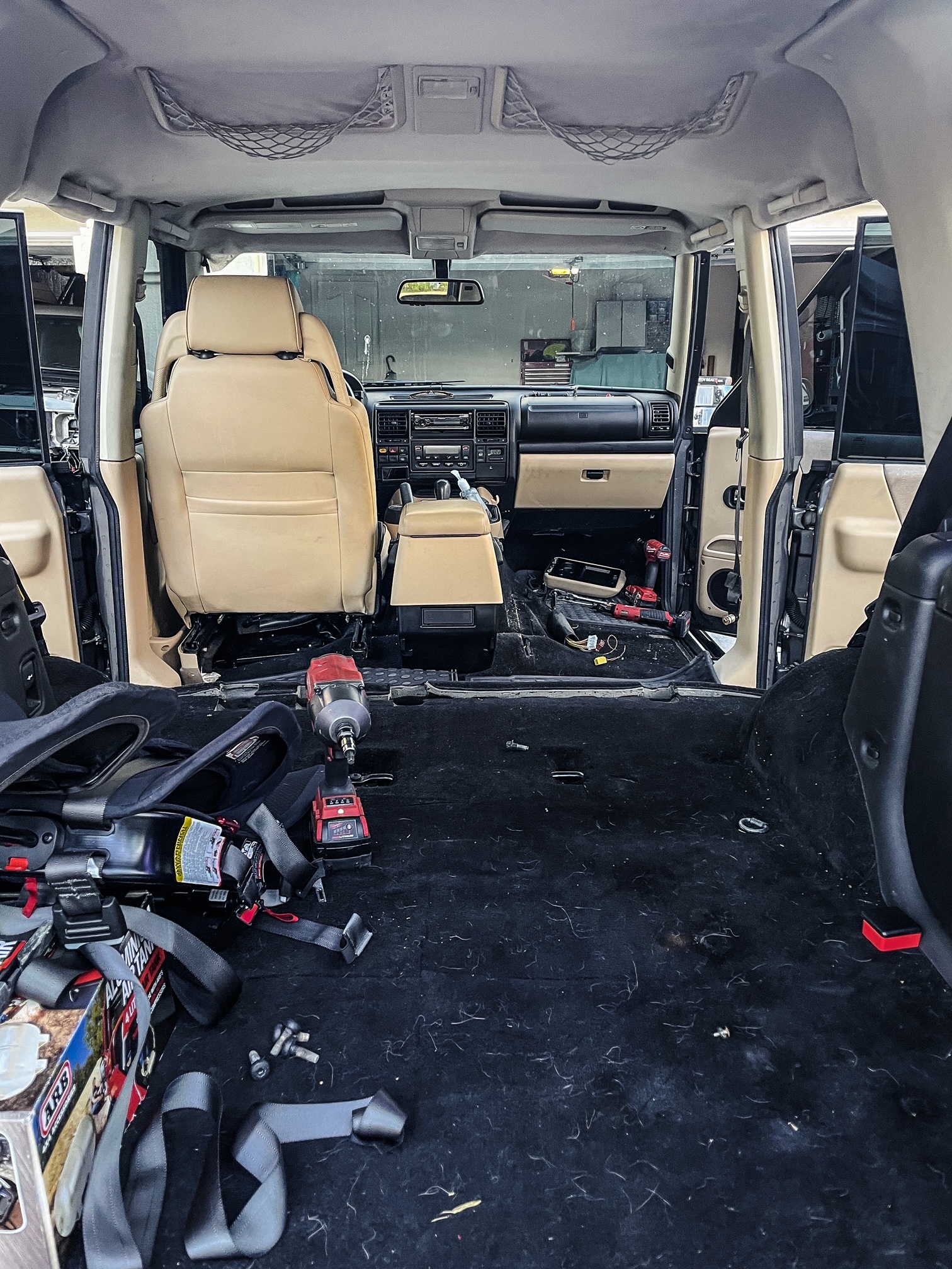 After getting the D2 dirty during camping, it was time to work on the interior which is a bit gross. One of the downsides of the S model is the crappy vinyl seats. Luckily a buddy of mine had a nice set of leather seats with black leather piping in his parts truck. The seats definitely classed it up a bit.