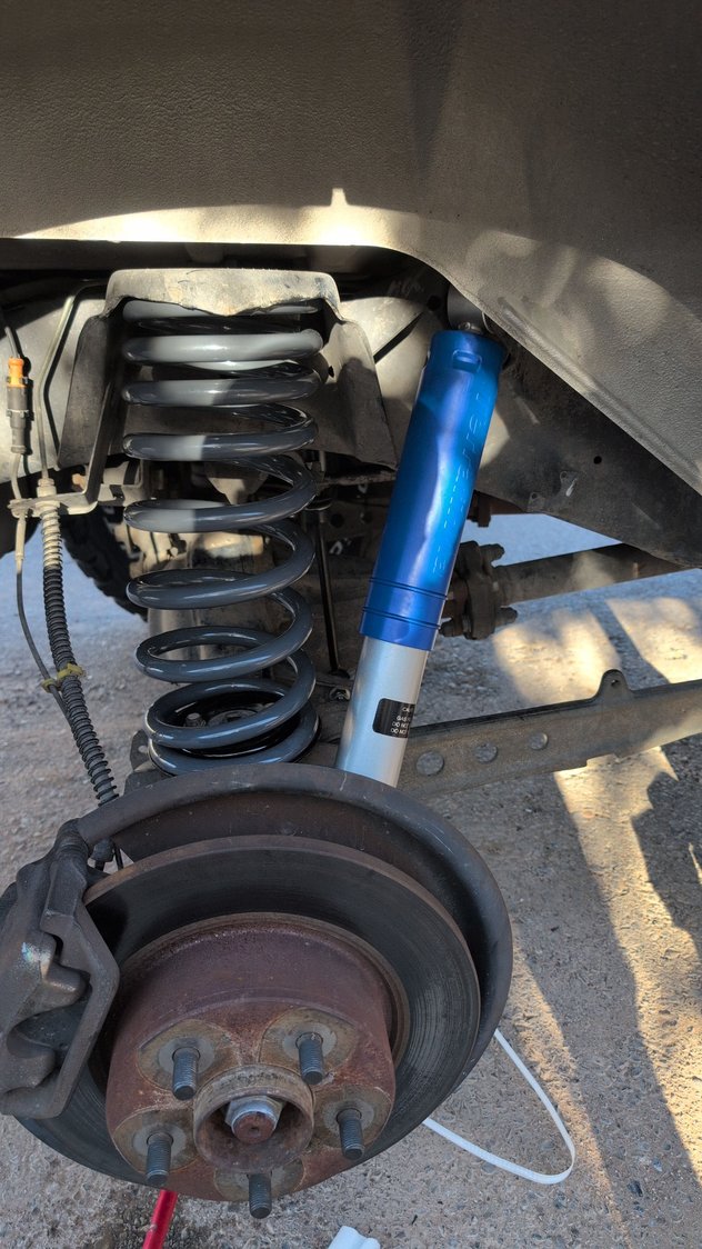 Threw on my Terrafirma lift kit this weekend as well as desperately needed new lug nuts to replace the old beat to hell ones. The old stuff was pretty crusty and kind of a pain to get off, but generally rust free at least. I also swapped the hard coolant lines with 5/16 fuel line after snapping a couple trying to move the coolant reservoir out of the way to get at the top bolt of the front shock. I did the same thing on my last Disco and it held up well and it's easy to carry plenty of spare feet of it should you develop a leak. The one thing I couldn't do was my brakes and extended brake lines because 3 of my new calipers didn't come with banjo bolts so I gotta wait for new ones to arrive. I suppose I could use the old ones, but why not replace as much as possible instead of relying on 25 year old parts. The new fan and clutch plus serpentine belt will go on at some point soon as well, but that's always kind of a PITA so probably a job for next weekend when it cools down a bit.