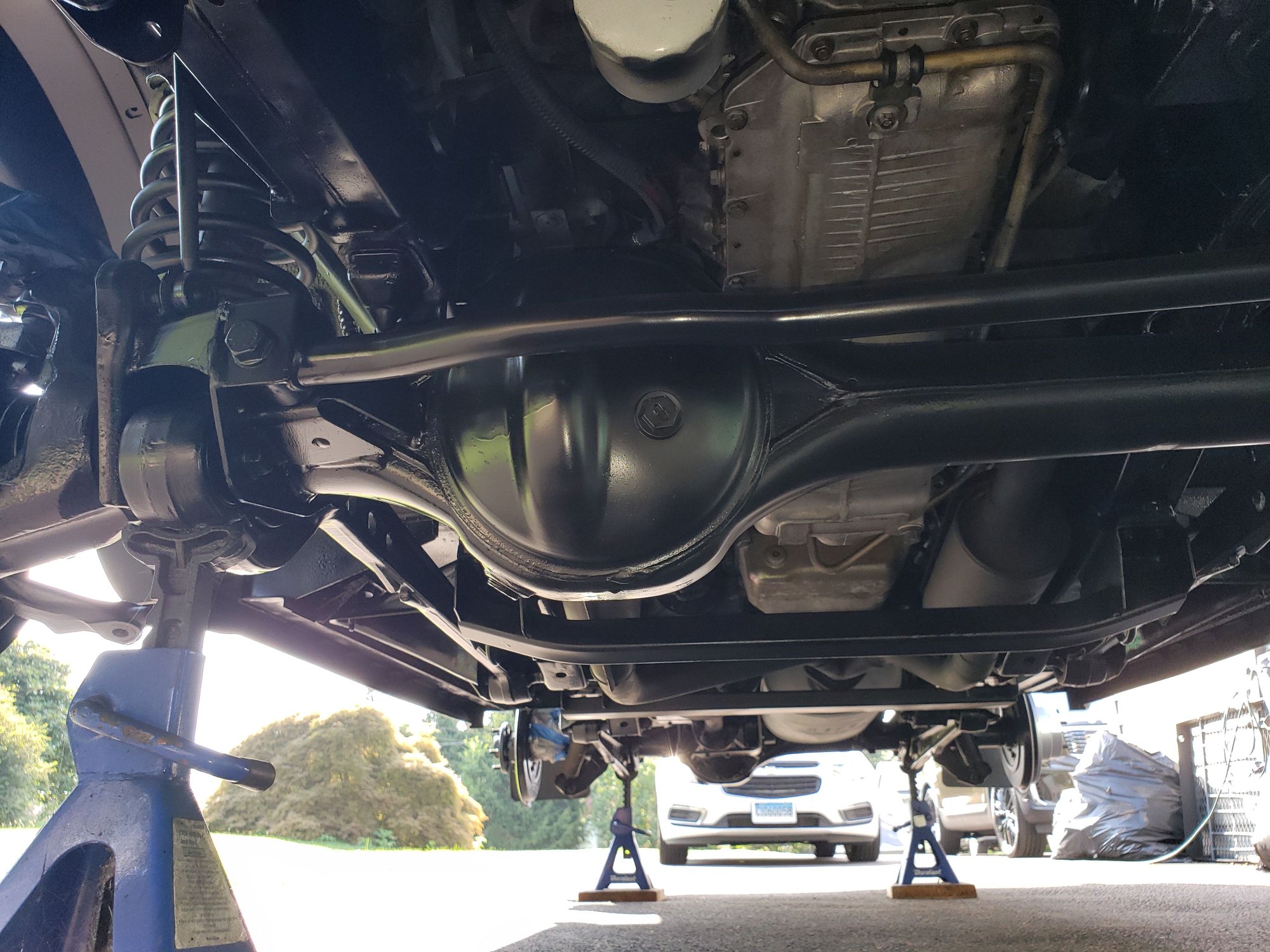 Old gray ended up being a waste of time, knew frame was rusted and planned on doing a rear quarter frame replacement...but frame ended up cracking just in front and behind rear radius arm mount...so...after building it that far...pulled the plug.