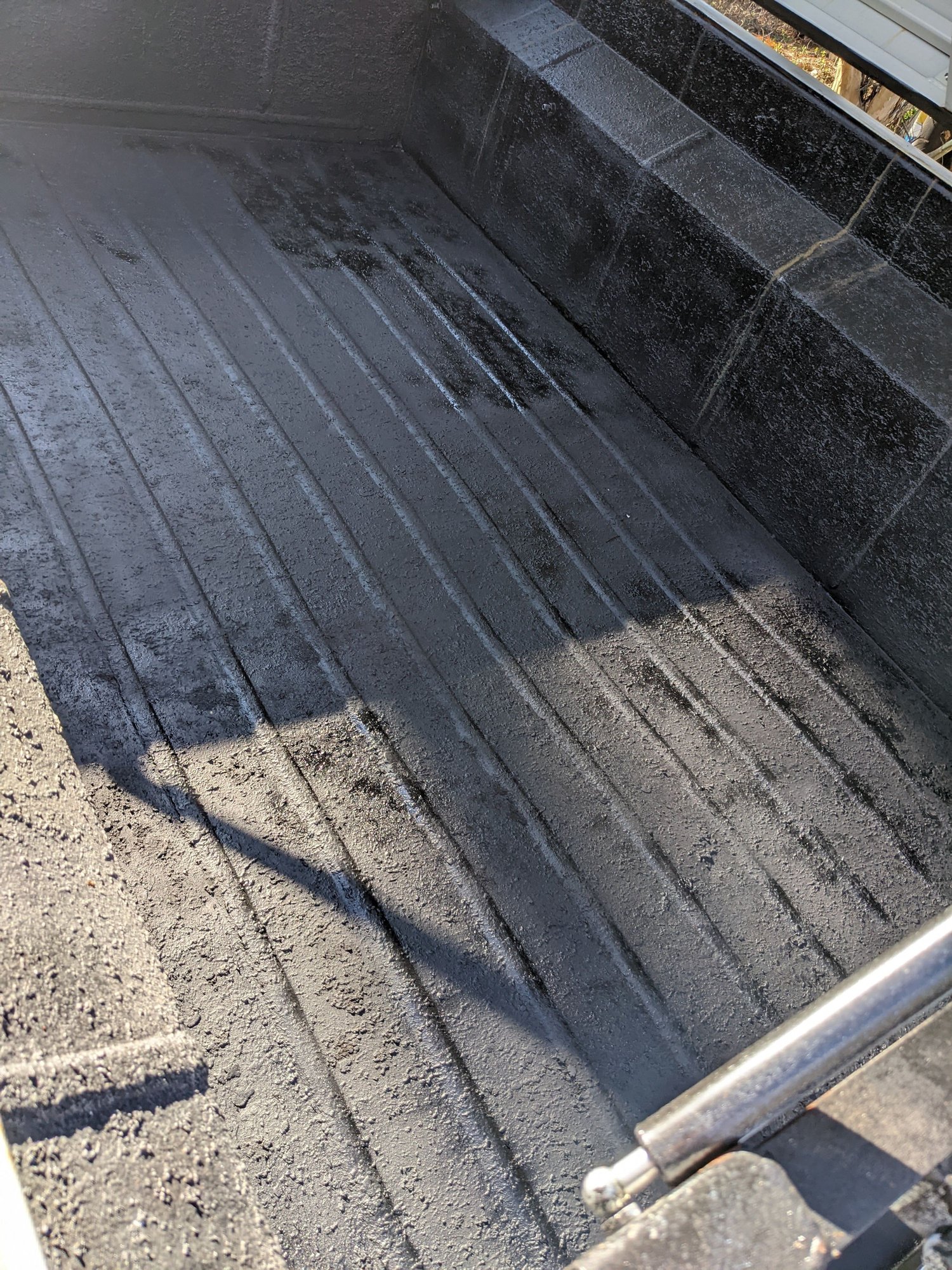 Waited a bit then did a second coat. Then it was time for the Herculiner. A couple of coats later with a bit of dry time in between we finished up here for the day.