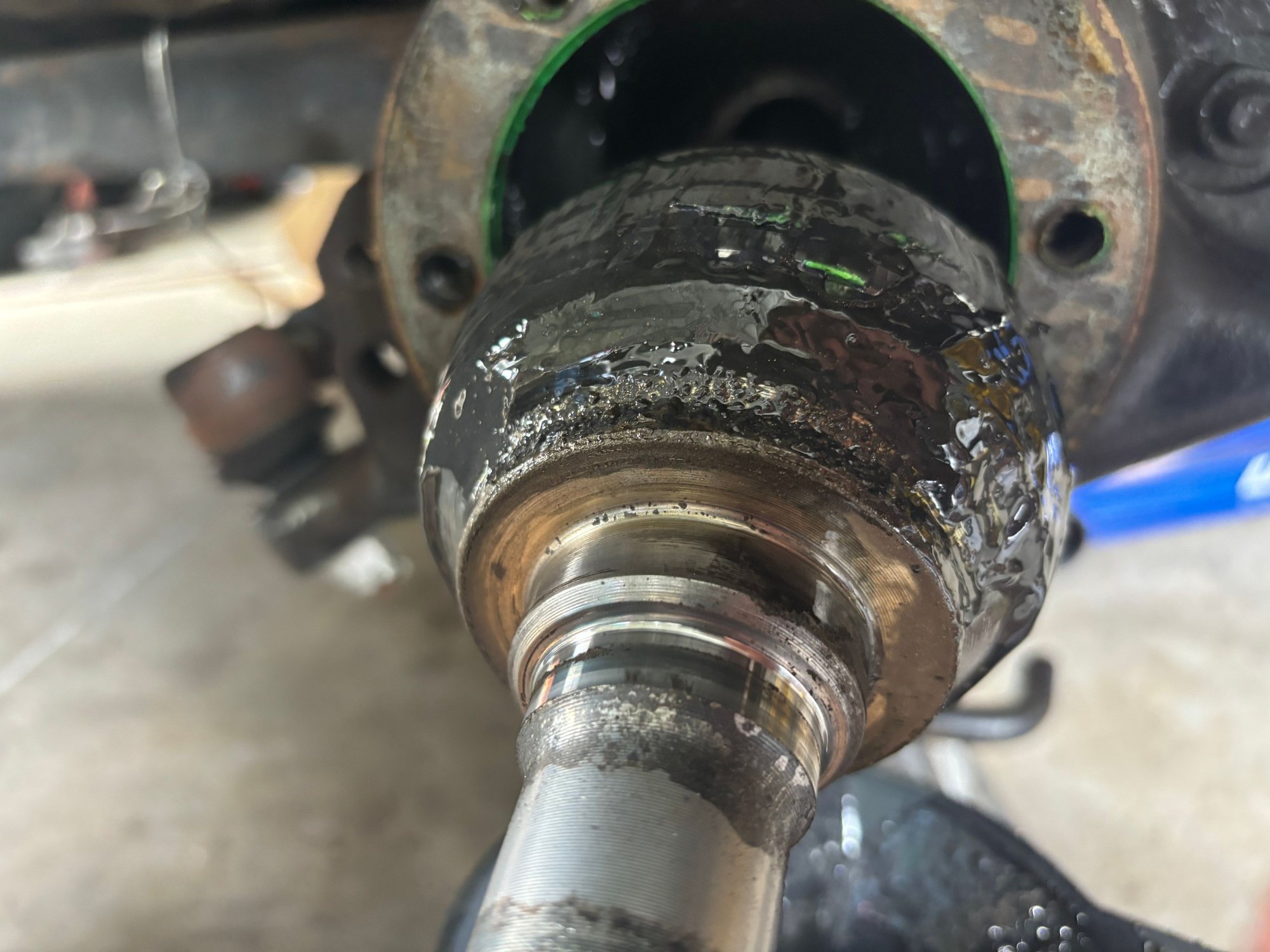Hey I recently replaced the passenger side axle shaft and all the axle seals and bearings as well as the bronze bushing on the backside of the spindle. After a couple weeks I took the axle out to look at a differential noise and noticed the swivel ball fluid has bronze flake in it and the bronze bushing was slightly worn. I also noted there was a little more end play in the outer axle shaft at the snap ring and probably need to measure for a new spacer washer. Could that be the reason for the excessive where on the bushing or should I look elsewhere?