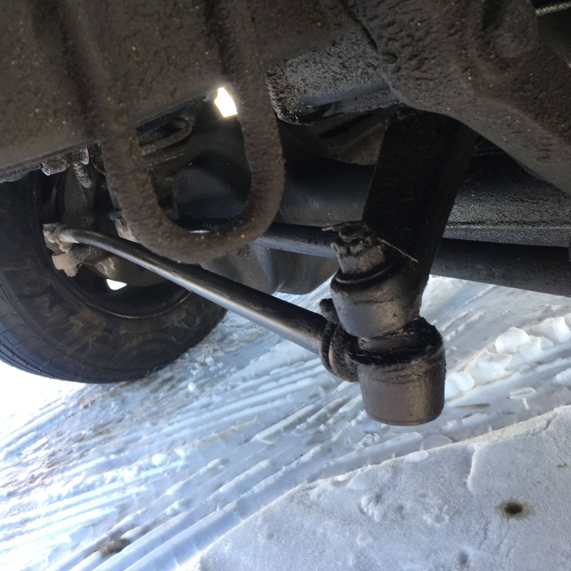 I acquired my ‘97 from the previous owner with what looks like some bent steering bars in the front. The front track rod seems very slightly bent, and the one is clearly bent around the front axle, but not touching it. The boot on my front track rod is toast, not wiggling when I push it though. This all probably explains why my steering wheel is cocked slightly to the left. My driving and turns do not seem affected.