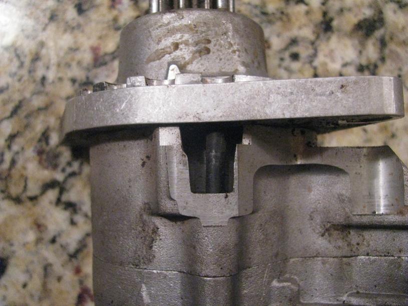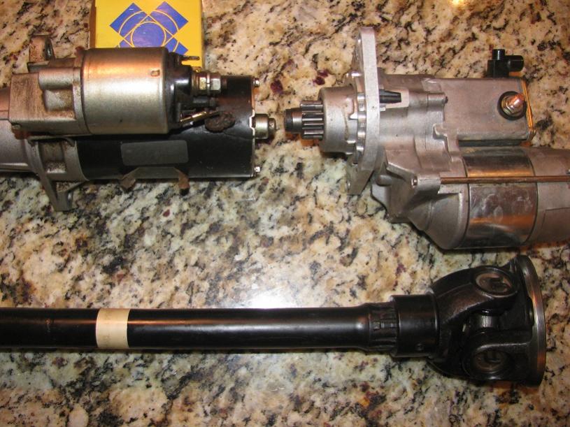 Well here's some better photos. You can see the skinny bolts securing the starter to the mounting plate have bent. The case is also actually cracked from hitting the U-joint. Finally you can see how the britishstarters.com starter clearly sits much lower than the stock starter. Rotating the starter may help, but this is how I received it and so how it was installed.