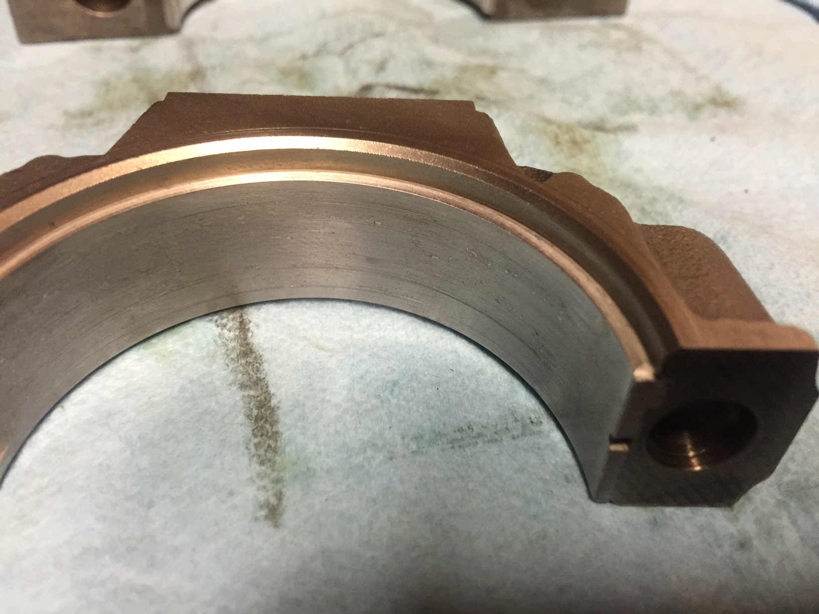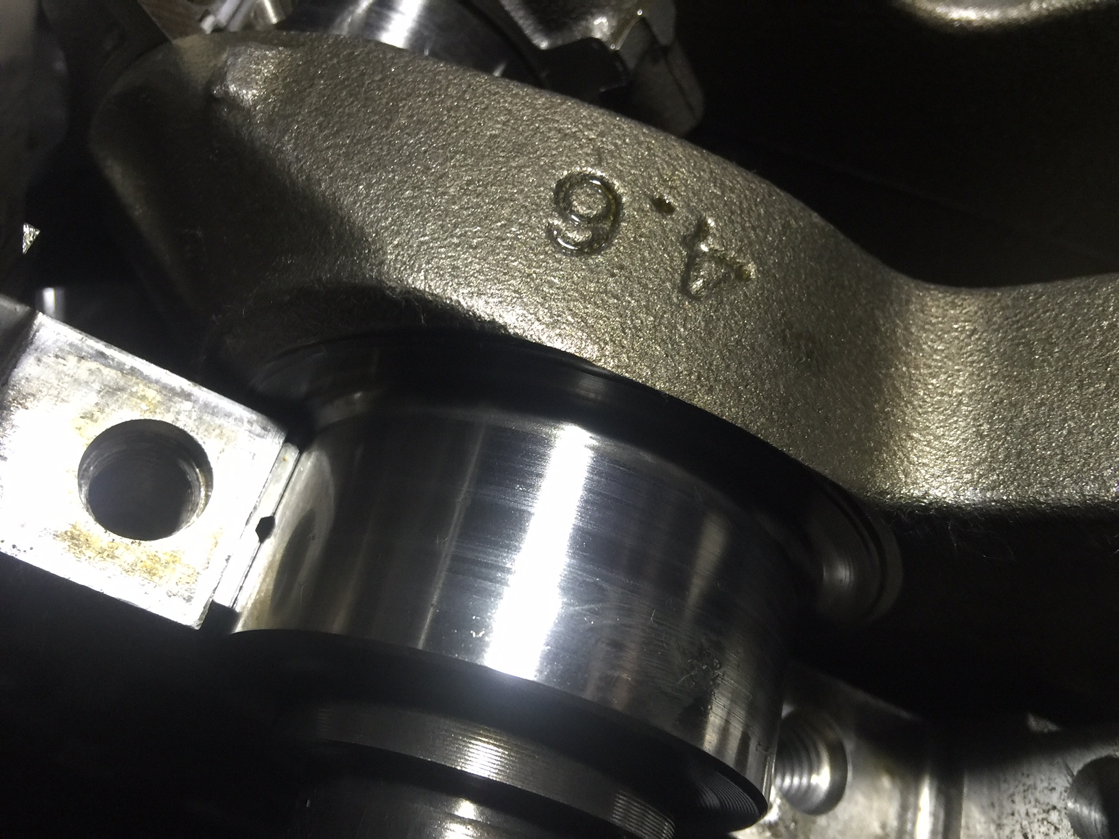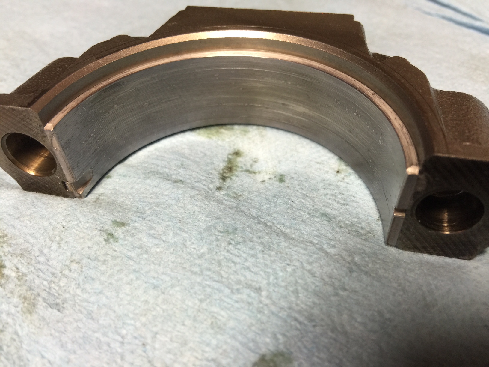 • Pitting to the bearings reflecting dirt or contamination was present and not cleaned off of the crank or bearing surfaces when the bearings were installed.