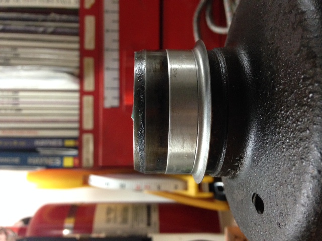 Once you remove the pulley you may notice that a ring has developed (as seen in the pics below), this ring is the result of the pulley rubbing against the seal which causes oil to leak through. Replacing the seal often doesn't remedy the leak, or guys will seat the seal in a different place which is just a bandaid on a larger wound IMO. If you've gone so far as to remove the pulley and replace the seal you might as well fix this properly and also install a speedi sleeve. A sleeve increases the diameter of the pulley, and you typically want it to seat where the majority of the wear and tear derives i.e where the seal is rubbing against the pulley.