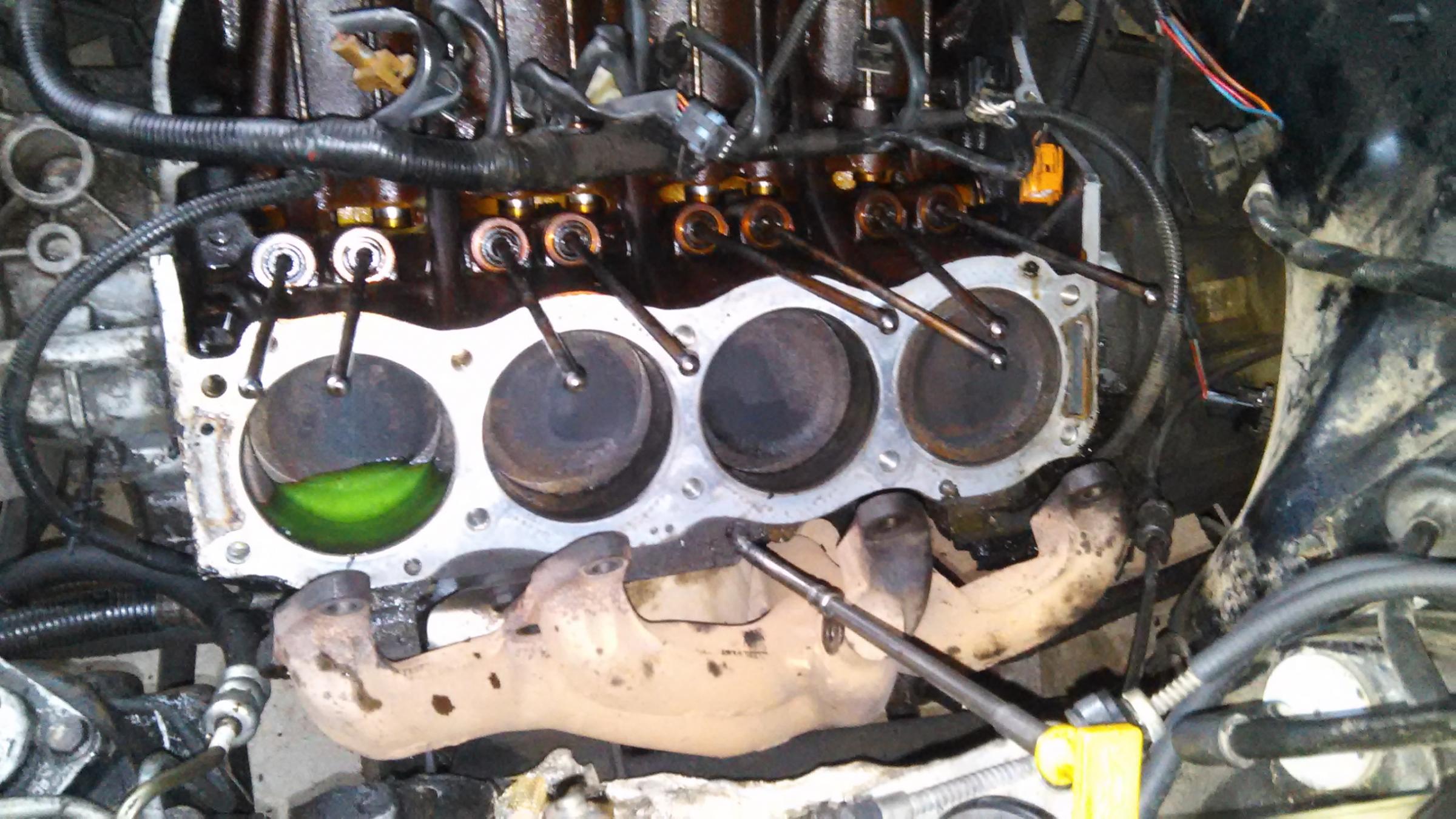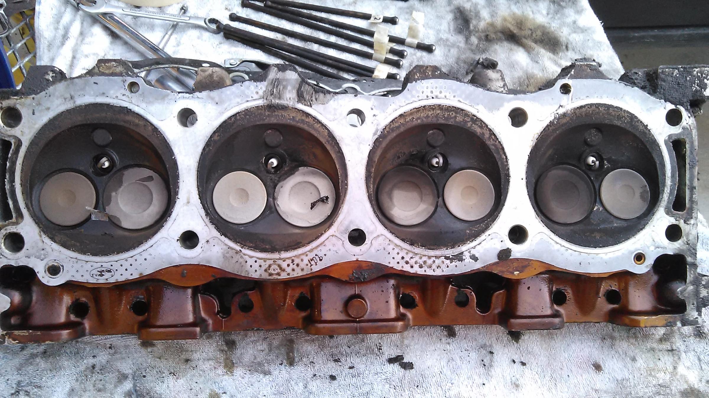 Yeah rods are good. Not mushroomed. Got the passenger head off today. No steamed pistons! Everything looks good. Just really dirty. ***** the bastard that didn't change his oil as scheduled with this beauty. Soooooo much build up and caking of oil. Carbon build up on heads and valves isn't too bad. Straight edge check was good on this one too. I'm confident enough not to take them to get checked. Just gonna clean them up and replace the valve seals.