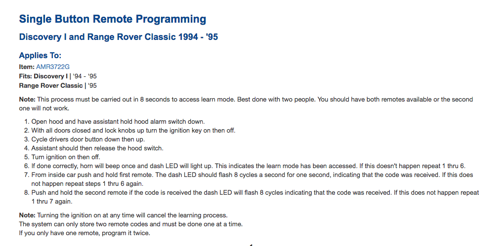 I've just bought my first Land Rover a 95 disco which I'm going to take off roading. When I bought it it came with 1 key and no fob although the key works fine in the ignition it doesn't work in the doors. My question is if I buy a second hand locking ecu with fob and wire it in will the fob the lock and unlock the doors. Any help with this is much appreciated.