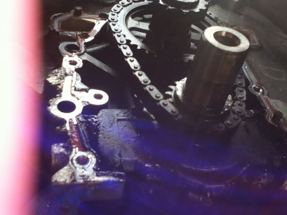 The timing chain seems to be really loose... floppy loose. I shot a video showing it and the scoring on the oil pump gears and faceplate.