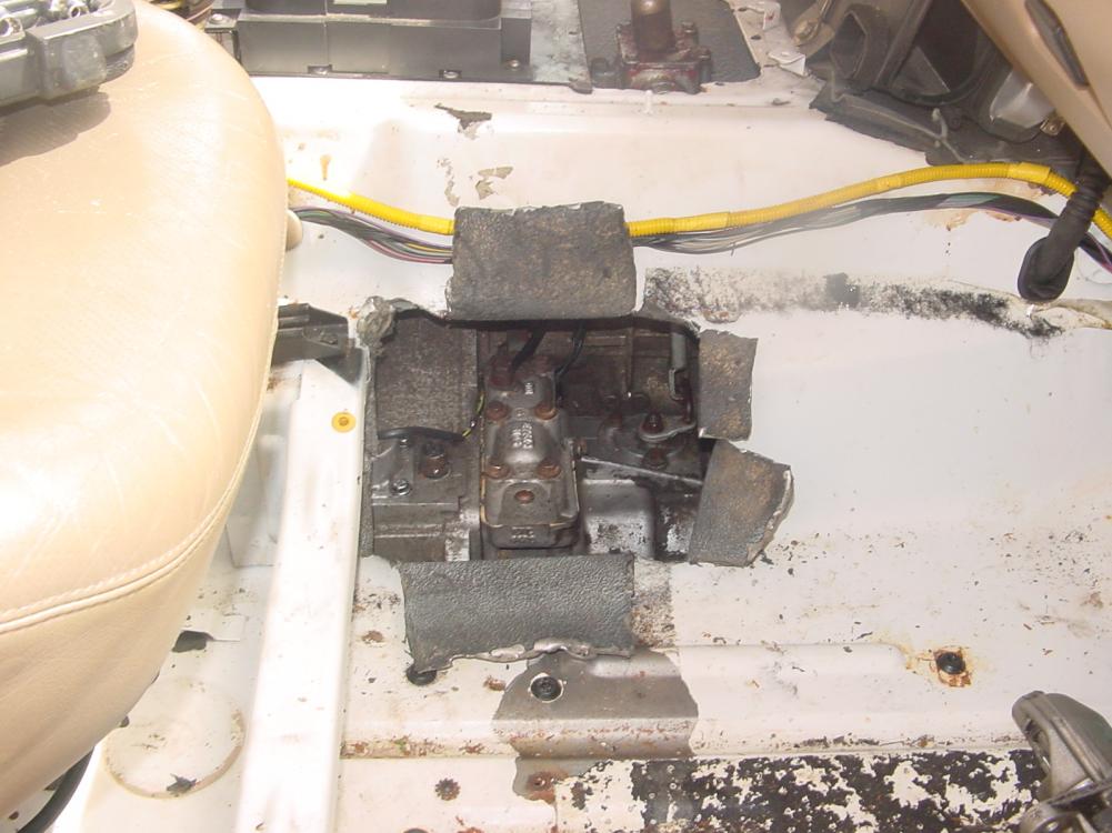 Here's a couple of pics of the access panel I "installed" in the passenger's floor board to get to eveything much easier. The CDL shift linkage is to the furtherest right side of the pic, that is the pivot point tat rotates and engages or disengages the CDL.