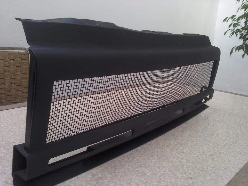 I could not find any good grill metal anywhere that wasn't over $80. I used cheap hardware cloth with steel perimeter support. I spray prime etched it and then hit it with stovepipe paint. I painted the plastic parts with black plastic paint and then hit it with the stovepipe paint. I'm going to install the two pieces so that I can get the grill part out again should I find something I like better. I'm waiting to install until after I do the body work and wet sand, etc. so I don't mess it up. I'll probably hit the other exterior plastic bits with forever black or maybe even SEM bumper coater.