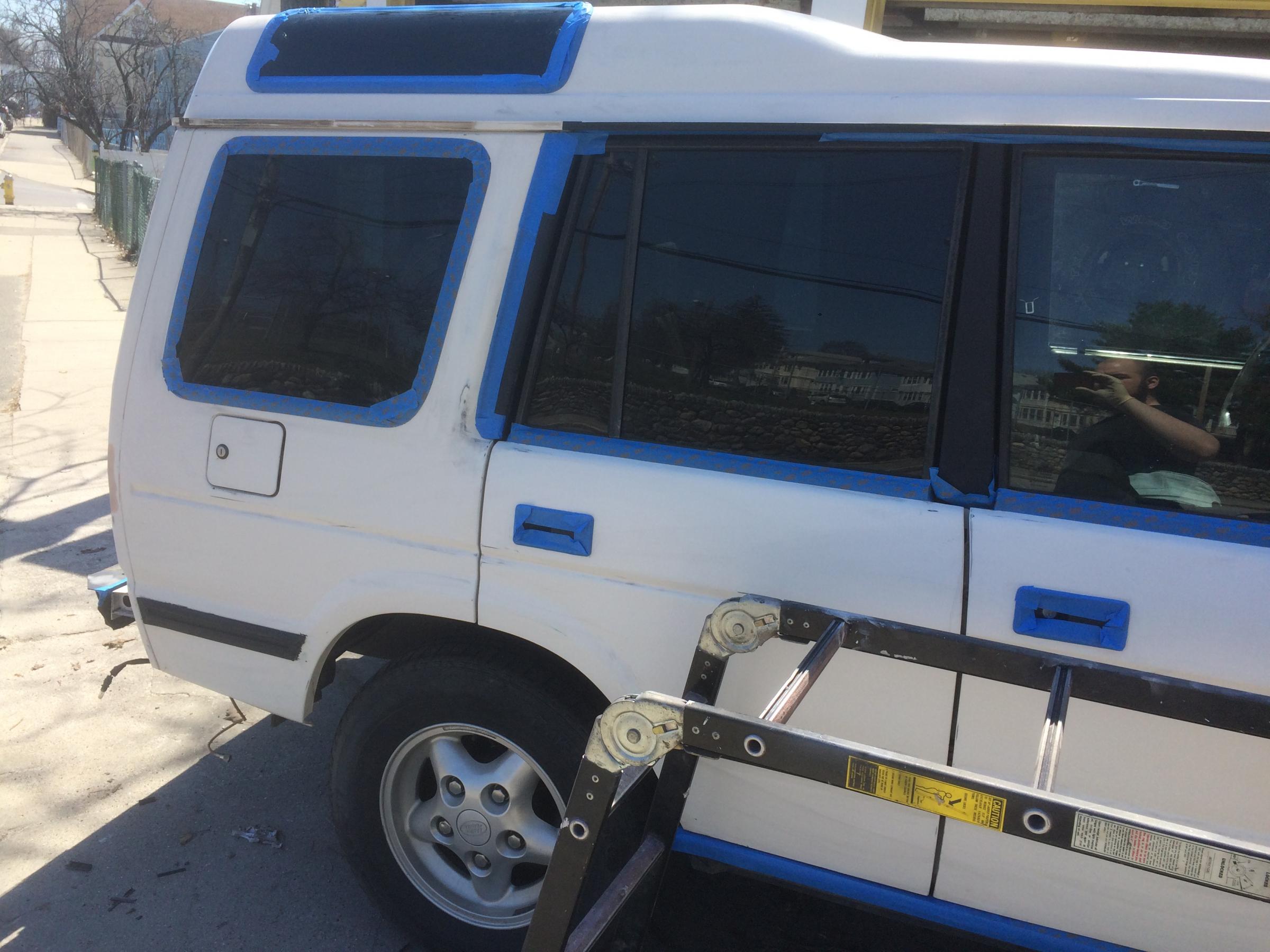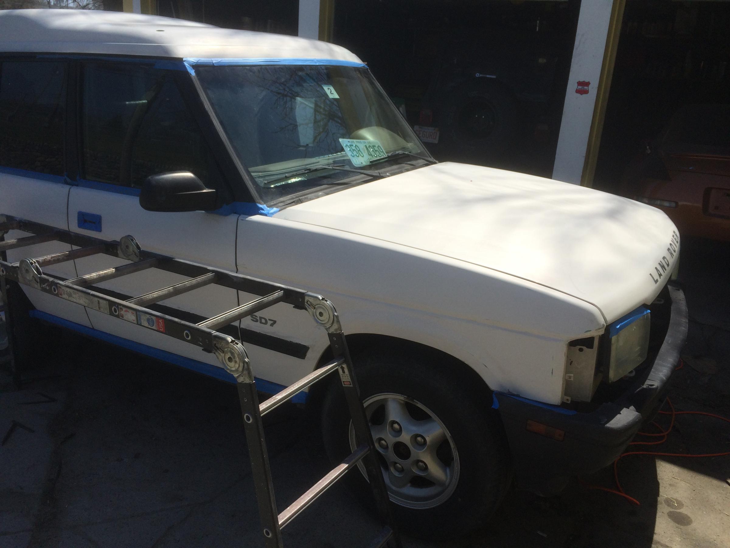 I gotta admit. ..few vehicles look as good as a white Disco. But if your happy then that's all that matters. How do wash that now? Did it come out even? Tape lines look good. Glad you masked off the handles.