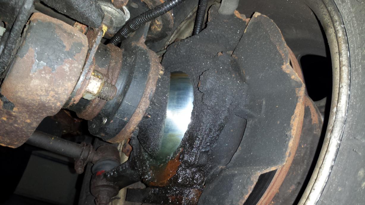 See that orange crap, I would pull the. Hub and stub axle make sure there is not water in there, looks like rust/water/grease