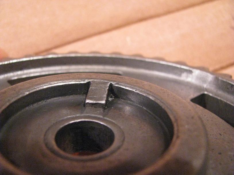 It fits on much tighter, there were bits of casting material or something left in the corners, and the key is a bit too wide so that it actually chiseled out the keyway on my cam putting it on. It has a dark grey, slightly pitted, slightly uneven, but very smooth surface. They good part is it seems very hard. They key showed no signs of wear even after being hammered onto the cam, and it completely resisted my attempted grinding with a stainless steel wheel.