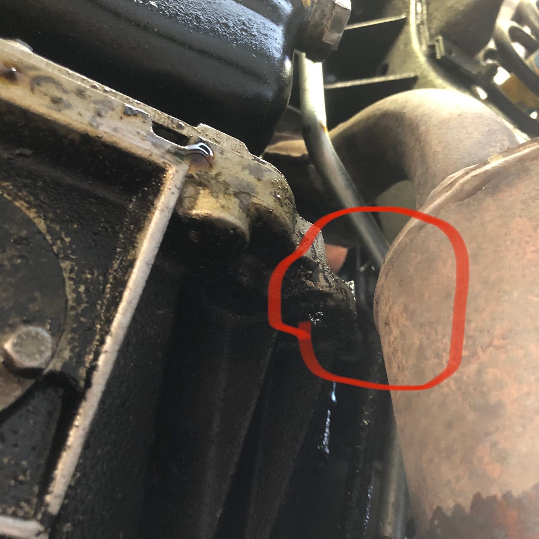 I decided to pinch the metal on both lines in order to clear the dreadfully tiny space between the transmission housing and the left cat. This is ill advised, I’m sure.