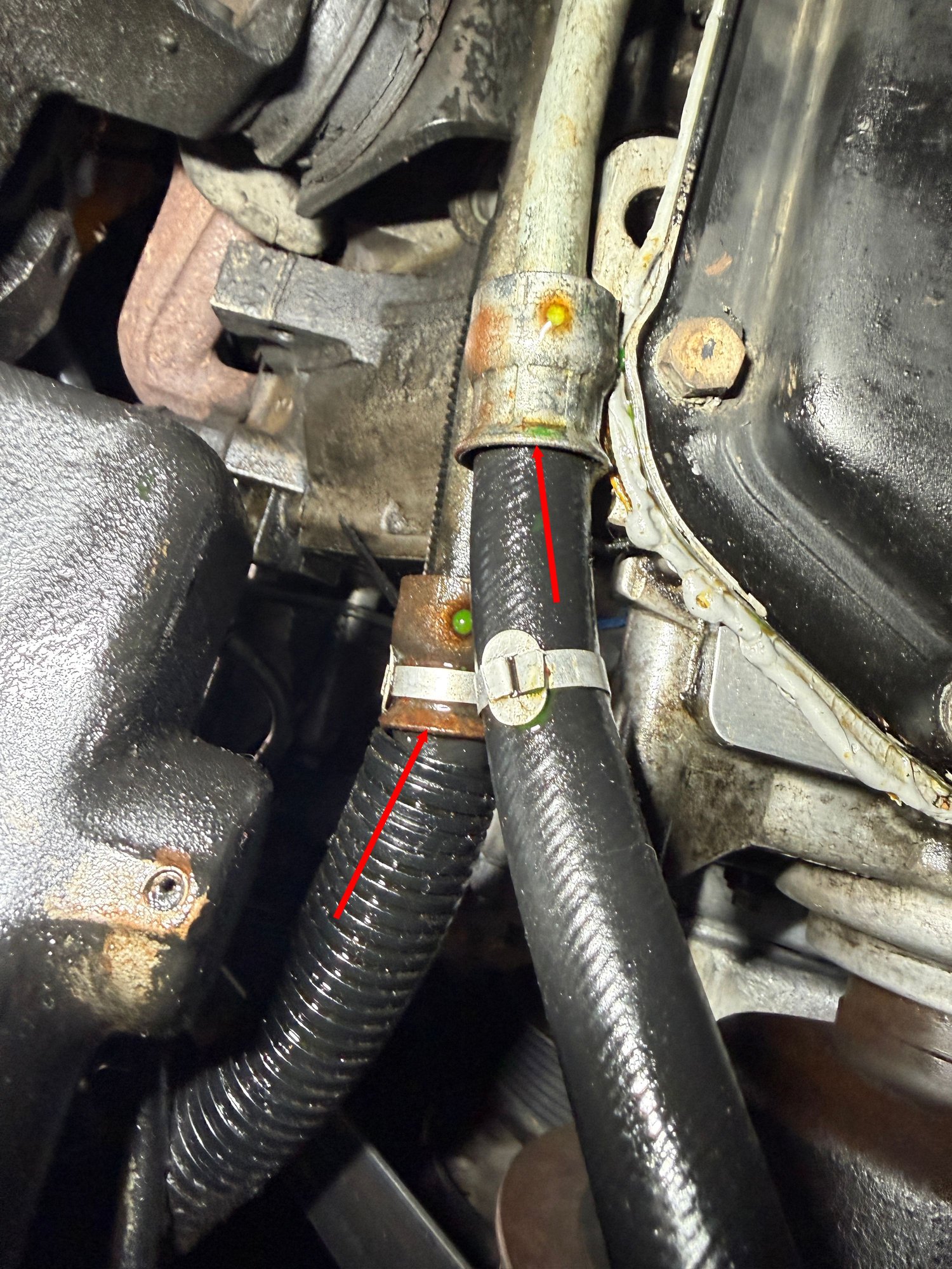 John, so both those hoses are moving oil only, right? I had some brain freeze and somehow i thought that coolant gets in one of these...i guess its because of that coolant stain.