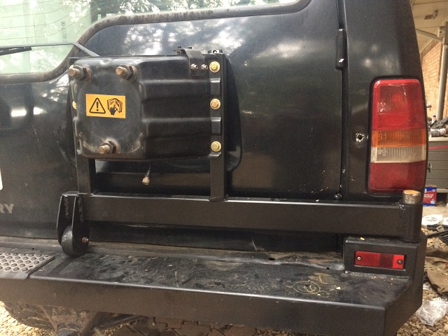 I've seen trailer spindles used in other J**P builds and wondered if anyone round here has made their own bumper with spare wheel carrier?