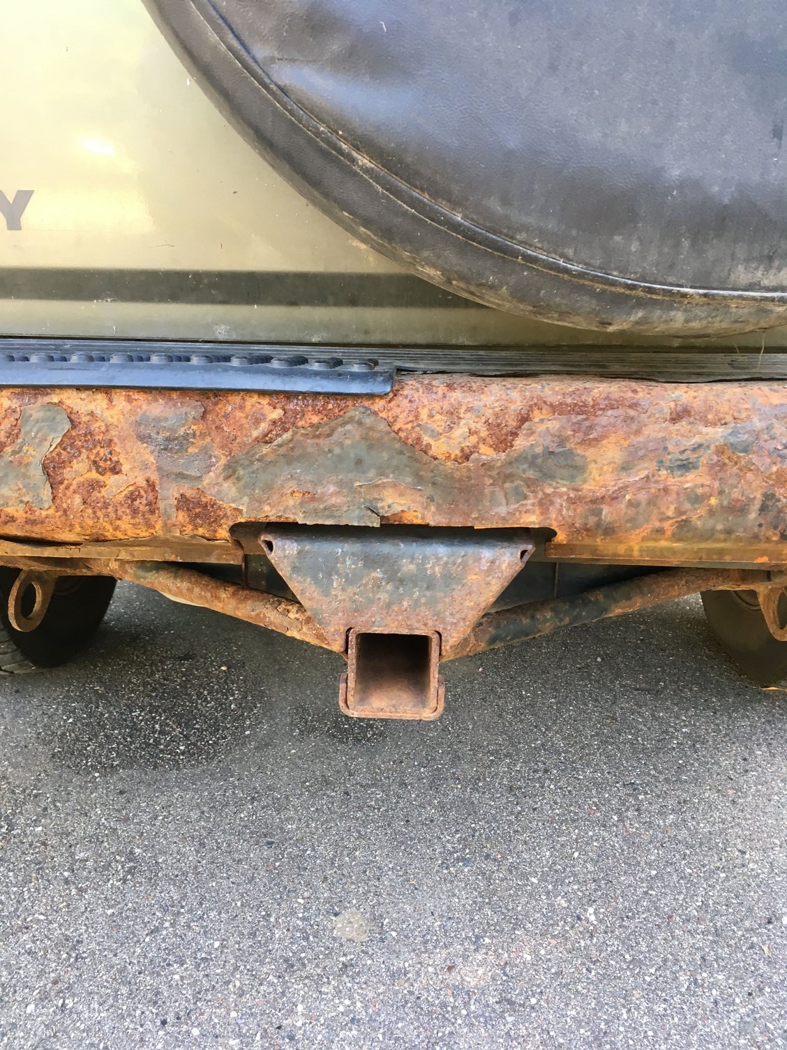 maybe the wife needs to stop bumping into me when she parks.. door doesn't hit the pass side of the bumper where it is bent, tire hits the light first. Bumper is higher away from the body than the side closer to the body so tweak does make sense. Surprisingly with all the rust, lights still work good!