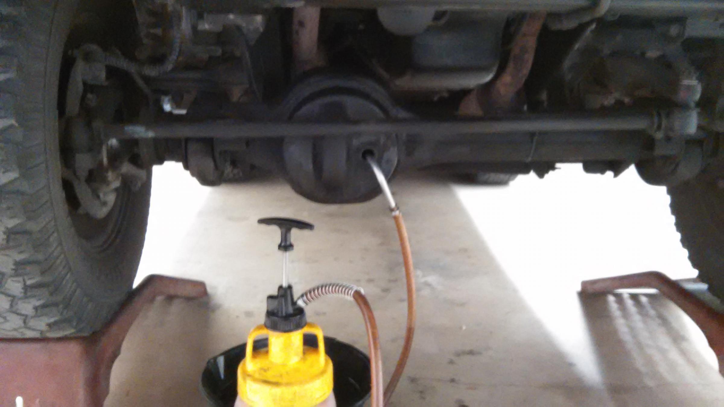 Serviced my t-case and diffs today. Also finished my double din stereo install (pioneer AppRadio). My fluid pump makes quick work of servicing in tight spaces. 3-4 pumps pumps out a quart and this thing holds 5 quarts. I used Lucas syn 75/90 + Lucas oil additve.