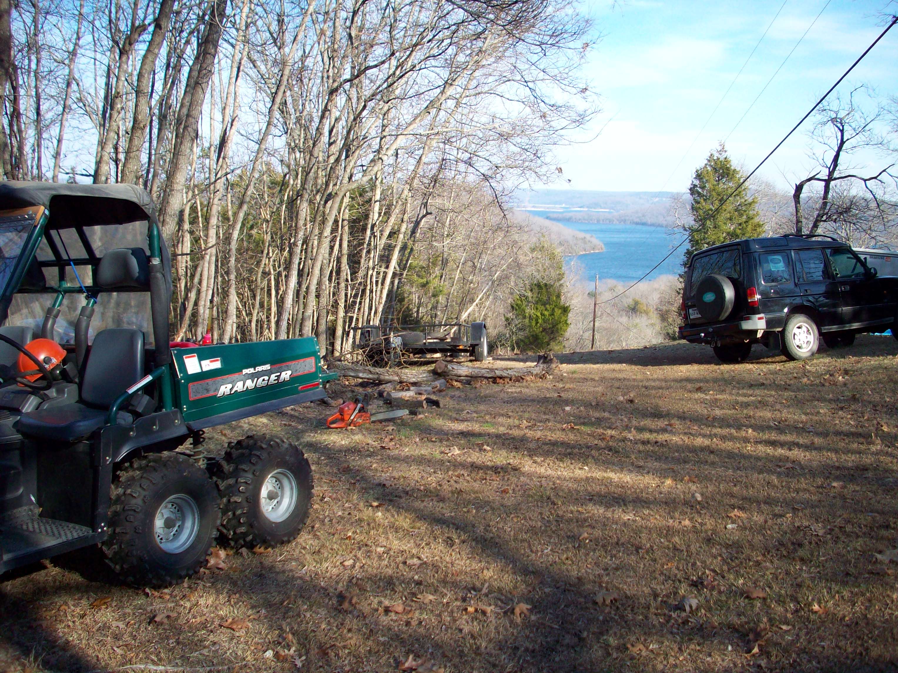 Our recent snow was gone, but I pulled a dead tree out of the woods to replenish the wood rack. Hadn't used the dif lock or low in quite a while, but it went in OK and the tree didn't put up much of a fight.