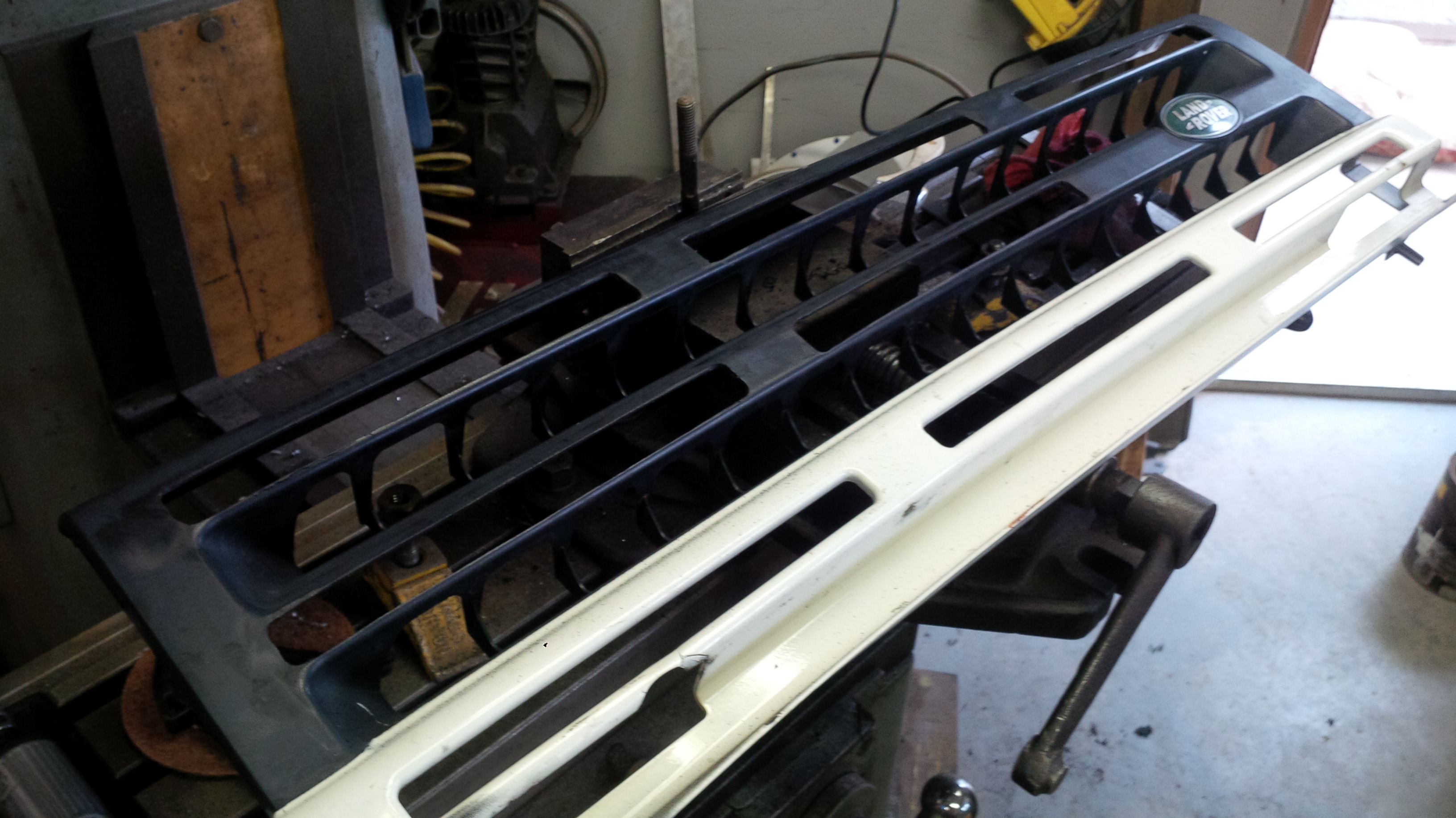 Started raining this morning, so an inside project was needed. I wanted to open up the grill to get some more air flow so this is what I came up with. Still might add woven stainless steel wire mesh behind the grill to keep debris from getting into the condenser and radiator.