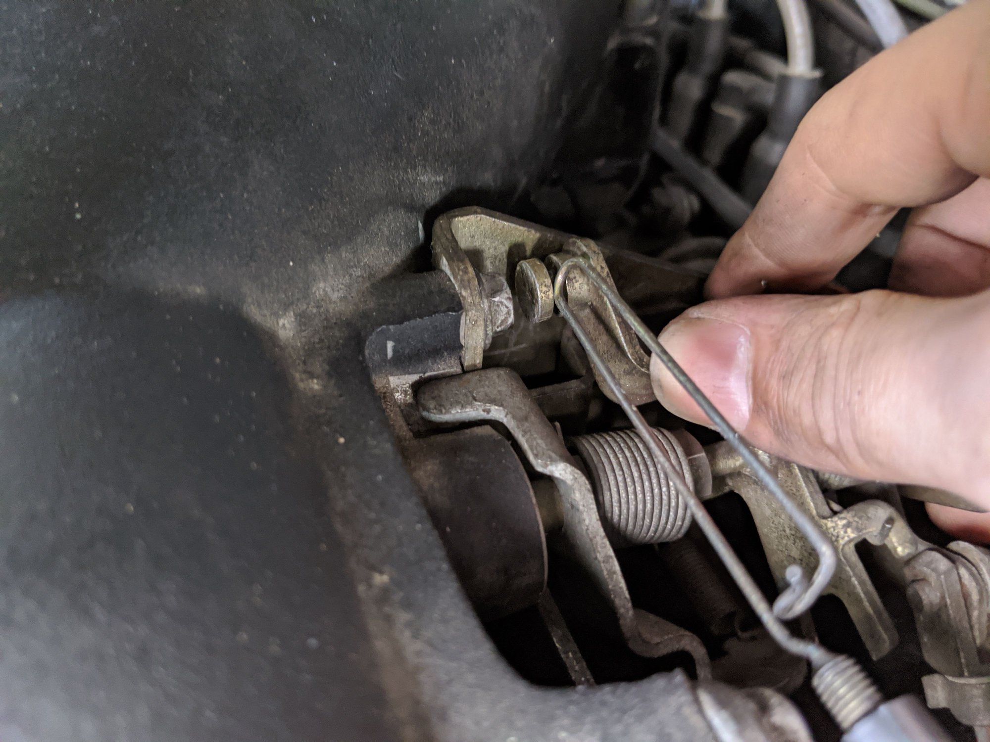 I noticed, on my 99 discovery 1, today that the linkage for the vacuum pump to the throttle cable wasn't attached. When I connected it, it forced the throttle to sit in a open position. Here you can see the when the linkage is connected. I can't thread the connector out enough to let the throttle close. Any one have any tips or tricks before I start messing with it? Close up of the throttle not sitting closed Closer up Linkage disconnected