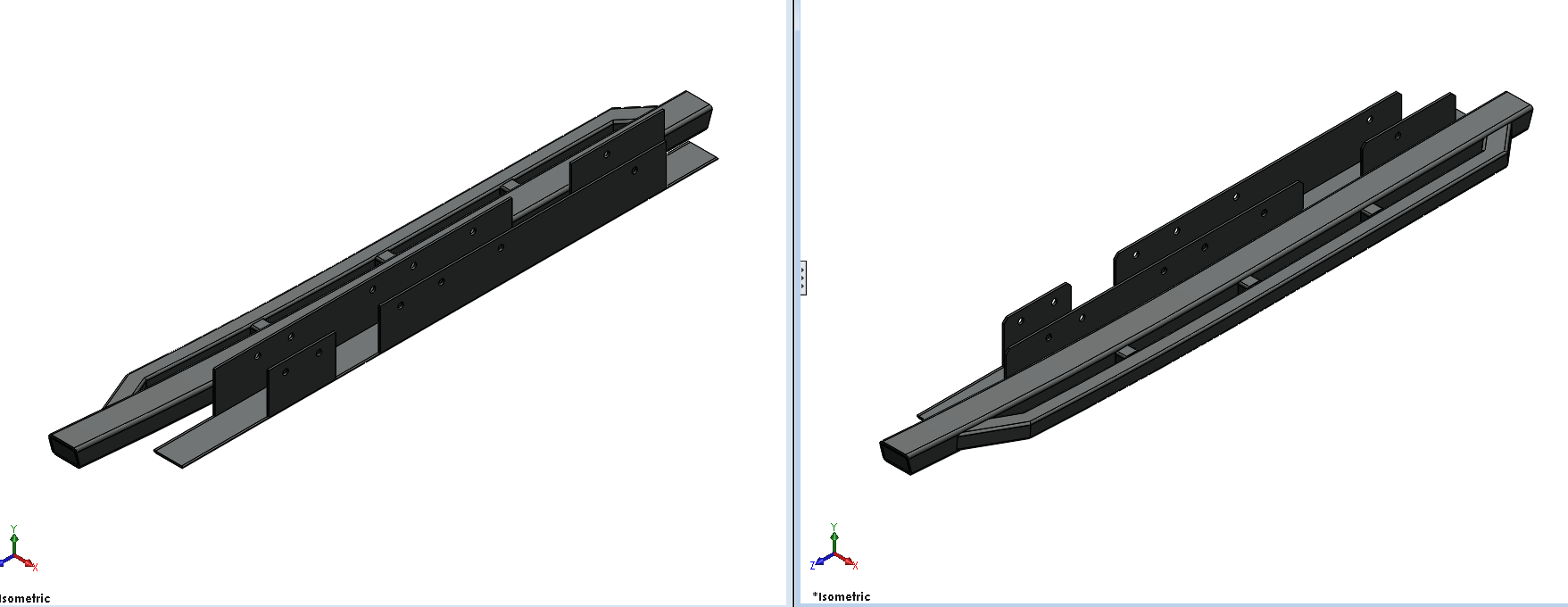 Well got the front and rear shells drawn and converted to omax. Front bumper was cut today from 10 ga AR400 on the water jet and started tacking together. Steering skid plate is drawn and waiting on material. The diff guards are causing me trouble though. Ideally I would like full protection. problem is the front diff has a track bar and steering stabilizer in the way. So there is more work to be done there. The sliders are drawn and waiting on material to arrive. The roof rack is another issue. I ordered 5-20 foot lengths of 1 inch seam welded tube. What was delivered was 5-20 foot lengths of 1 inch solid bar stock. Still trying to sort that out. Pics to come tomorrow