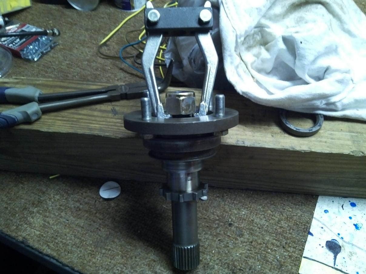 Finally got around to reassembly today and dammit. That wasnt it. So i pulled the front bearing and shaft an it definitely feels and looks like its the culprit. Got bearing and seal on order will post back with results. Oh yea, the slide hammer worked like a champ . Just for any body else trying this. This was my attachment setup