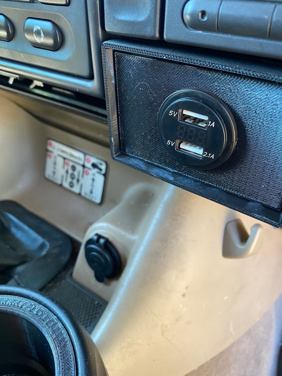 I kept a cigarette lighter there so it looks like stock but then put a 2 usb port into the ashtray or coin thing, whichever one is on the driver side. I drilled out the stock one vs 3d printing one, however that has it's own difficulties of brittle plastic and large drill bits that tend to grab...lots of filing was done.
