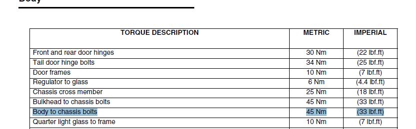 Body to frame torque?
